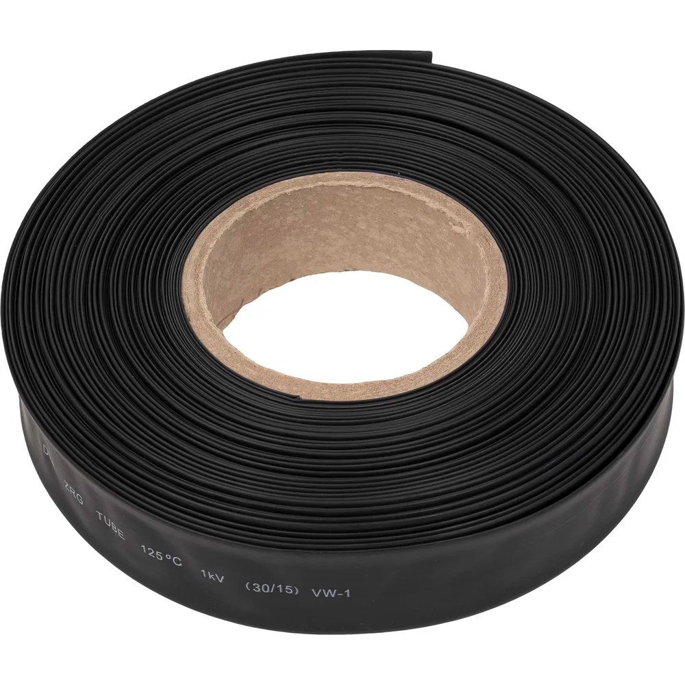 Трубка термоусадочная Gigant (2:1) 30/15, черная, 50м G-80129 представляет собой надежное решение для изоляции и защиты проводов при различных условиях окружающей среды. Длина в 50 метров позволяет использовать ее для различных задач. Срок службы составляет 5 лет. Изготовлена из полиолефина, она обеспечивает долговечность и устойчивость к температурным колебаниям от -45 до +125 °С. Не поддерживает горение. Трубка имеет коэффициент усадки 2:1, что означает уменьшение диаметра с 40 мм до 20 мм при температуре усадки 70 °С Трубки могут использоваться в электросетях с напряжением до 1000В. Устойчивы к воздействию ультрафиолета.