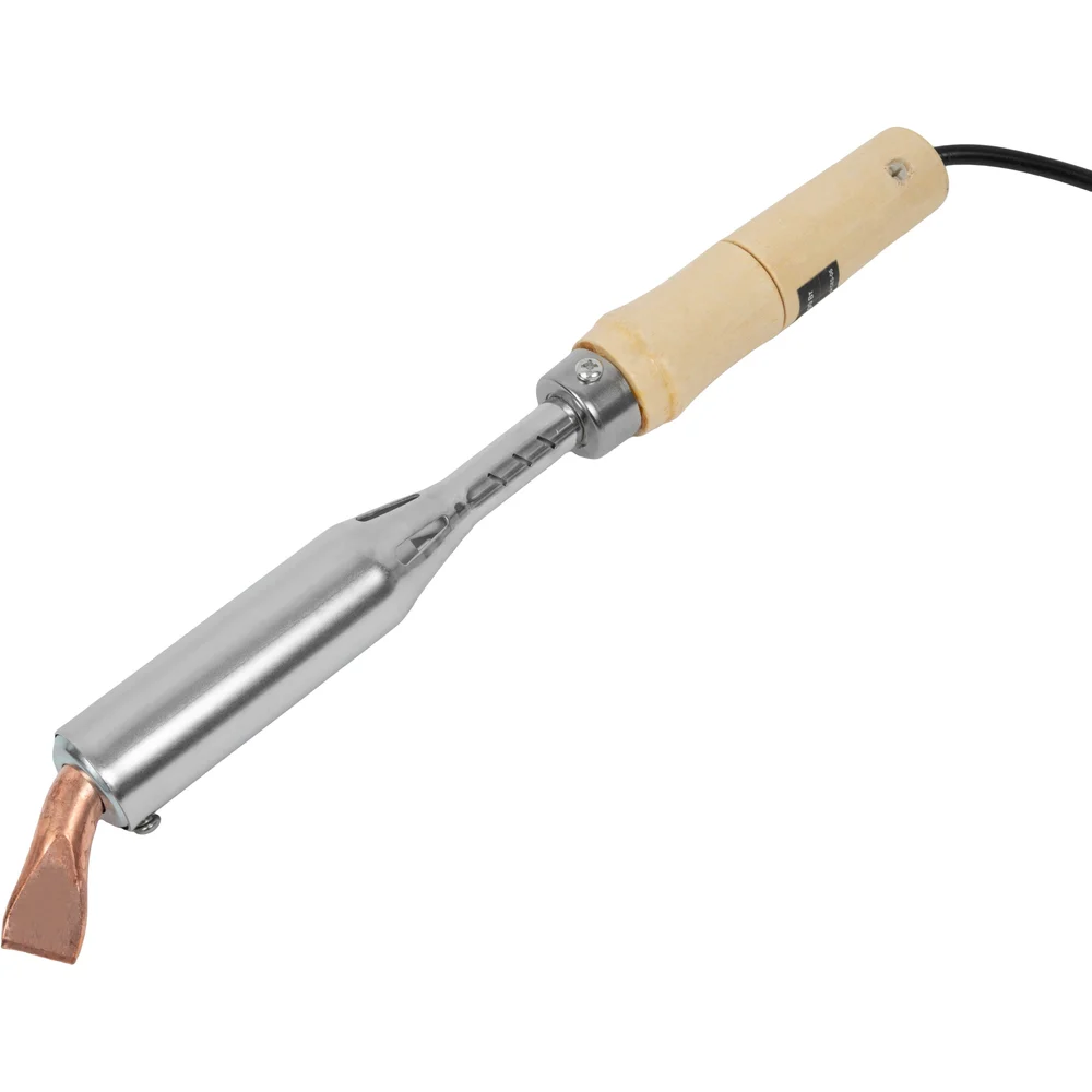 Электрический паяльник Gigant 200Вт GES-06 — это мощный электрический паяльник с клиновидным жалом, оптимально подходящий для пайки, электромонтажных работ, ремонта оборудования и выполнения сложных столярных задач. Модель отличается повышенной надежностью, эффективностью и продуманной эргономикой благодаря традиционной деревянной рукоятке. Ключевые особенности: Мощность 200Вт — обеспечивает быстрый и равномерный нагрев. Клиновидное жало из меди — съемное, отличается отличной теплопроводностью и простотой обслуживания. Толстостенный стальной корпус с гальваническим покрытием — устойчив к коррозии, механическим повреждениям и перегреву. Эргономичная деревянная рукоятка — не нагревается во время работы, удобно ложится в руку, предотвращая скольжение и усталость. Надежный нагревательный элемент — слюдяно-нихромовый, устойчив к износу. Технические характеристики: Напряжение: 220–240В, 50Гц. Максимальная температура нагрева: 520 °C. Время прогрева: 10 минут. Жало: клиновидное, съемное, медное, ширина 19,5 мм, диаметр 15 мм. Общая длина: 365 мм. Длина кабеля: 1,42 мм. Вес: 510 г.
