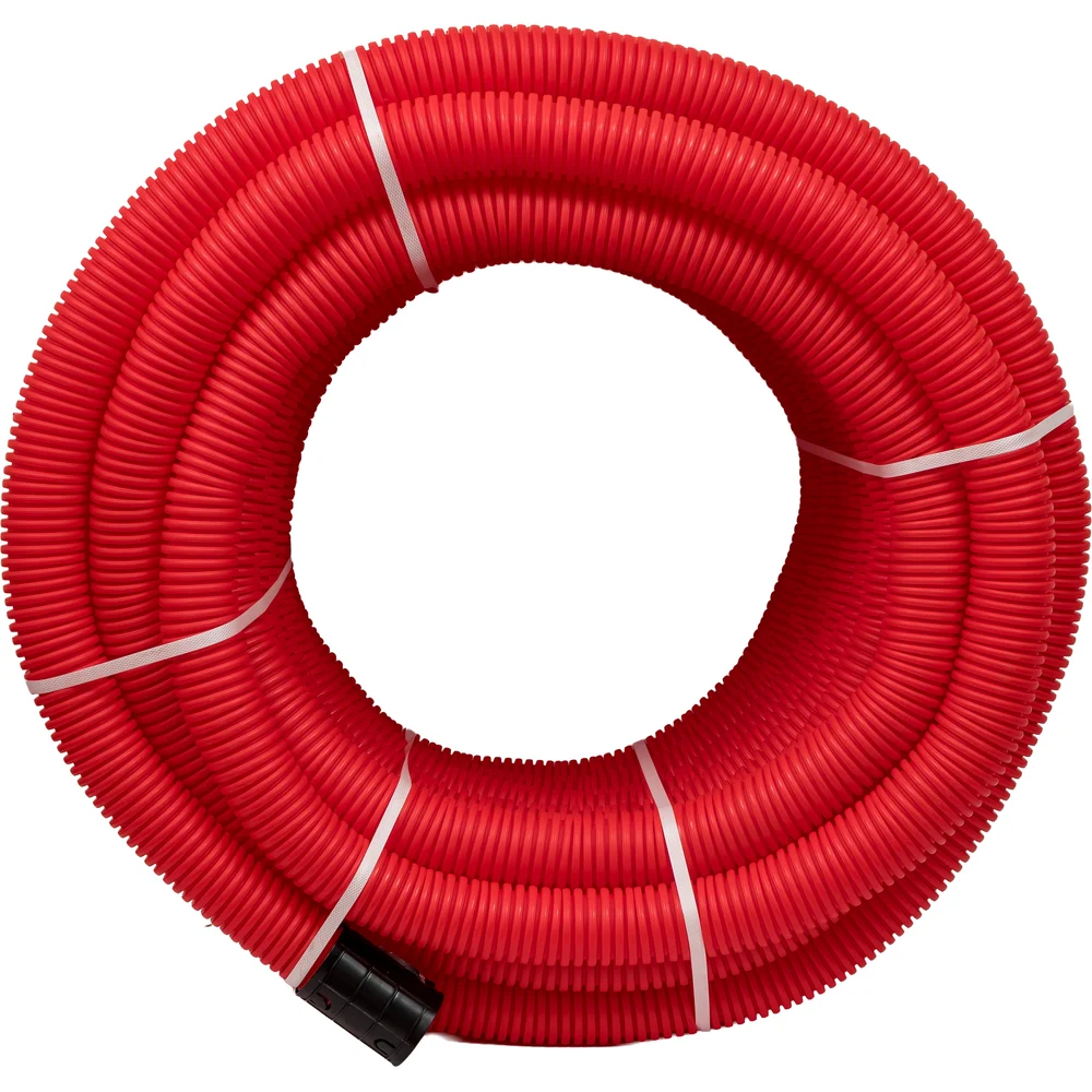 Gigant Труба гофрированная двустенная ПНД гибкая красная D63 с зондом 50м 801063GI безгалогенная применяется для прокладки кабельных линий высокого и низкого напряжения скрытым способом (грунт, заливка в бетон), применяется в электроснабжении, телекоммуникации, транспортной инфраструктуре, ЖКХ. Обеспечивает защиту проводов и кабелей от механических повреждений и агрессивного воздействия окружающей среды. Степень защиты IP55 без использования уплотнительных колец, IP68 при использовании уплотнительных колец. Преимущества: Изготовлены из высококачественного ПНД, срок службы более 50 лет. Высокая герметичность соединения IP68 (при использовании уплотнительных колец). Кольцевая жесткость (сила сжатия по ГОСТ 61386.1-2014): SN18, более 450Н. Стабилизатор цвета обеспечивает защиту от выцветания при открытом хранении. Каждая бухта комплектуется соединительной муфтой и стальной протяжкой. Высокая коррозионная, химическая стойкость, а также герметичность соединения. Климатическое исполнение B5.