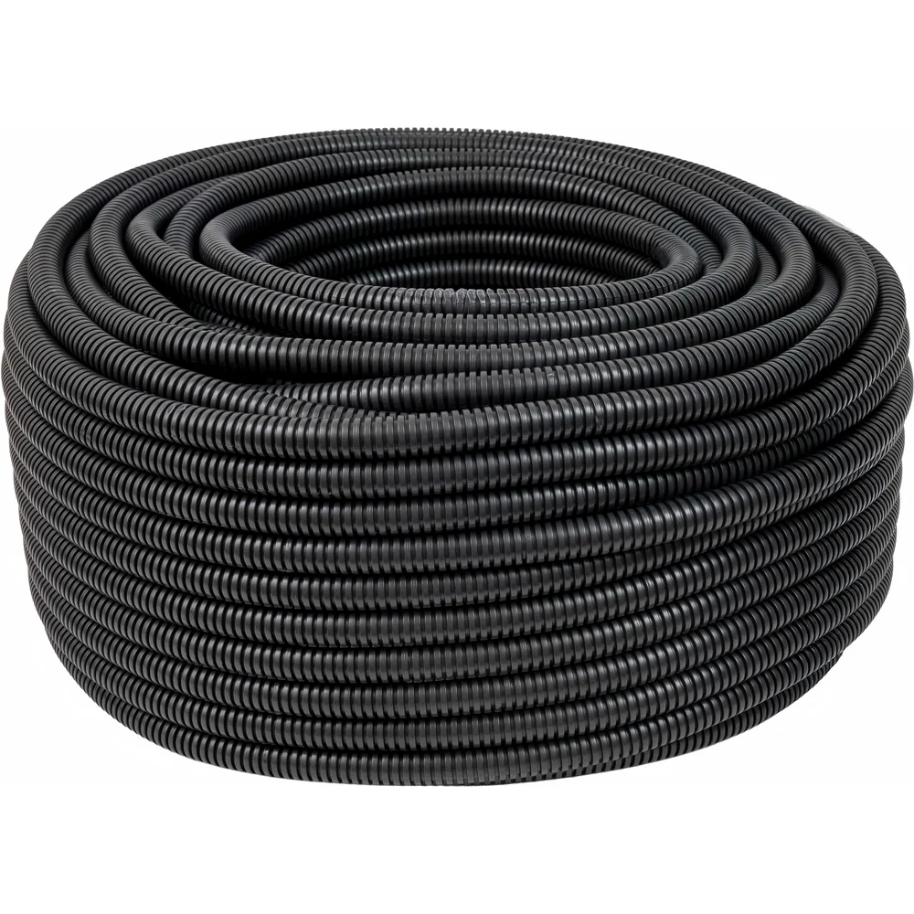 Гофрированная труба ПВХ Gigant легкая черная D20 100м 10120-100BL-GI предназначена для защиты изолированных проводов и кабелей от механических повреждений и агрессивного воздействия окружающей среды. Применяется для прокладки и защиты электрических, слаботочных, телефонных, компьютерных сетей, а также для огнестойких кабельных линий. Используется для монтажа как внутри помещений, так и снаружи. Преимущества: Специализированный профиль обеспечивает повышенные характеристики на разрыв и стойкость к ударным нагрузкам. Не распространяет горение, ПВ-0, пожарный сертификат ТРТС 043. Высококачественный (первичный) ПВХ обеспечивает долговременную эксплуатацию. Удобство протяжки кабеля обеспечивается наличием зонда (протяжки).