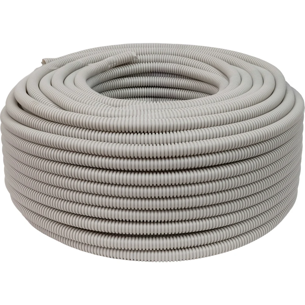 Гофрированная труба ПНД Gigant лёгкая серая D20 100м 20120-100GR-GI предназначена для защиты изолированных проводов и кабелей от механических повреждений и агрессивного воздействия окружающей среды. Применяется для прокладки и защиты электрических, слаботочных, телефонных, компьютерных сетей, а также для огнестойких кабельных линий. Используется для монтажа как внутри помещений, так и снаружи. Преимущества: Не содержит галогенов, не выделяет вредных веществ при нагревании, соответствует ГОСТ IEC 60754-2-2015. Повышенная эластичность и ударная прочность. Стойкость к ультрафиолету. Удобство протяжки кабеля обеспечивается наличием зонда (протяжки). Срок службы труб из ПНД - более 50 лет.