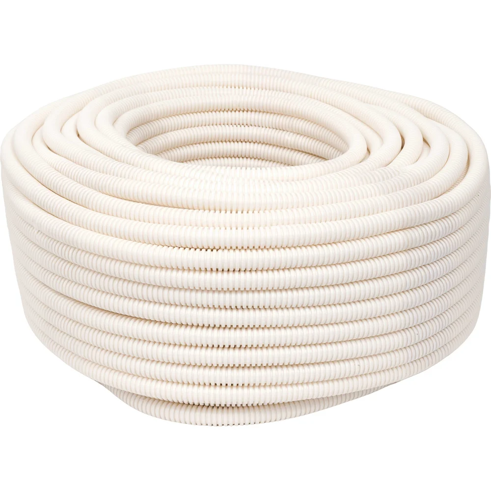 Гофрированная труба ПЛЛ Gigant легкая белая D20 100м 20120HFR-W-GI предназначена для защиты изолированных проводов и кабелей от механических повреждений и агрессивного воздействия окружающей среды. Применяется для прокладки и защиты электрических, слаботочных, телефонных, компьютерных сетей, а также для огнестойких кабельных линий. Используется для монтажа как внутри помещений, так и снаружи. Преимущества: Безопасность: Не содержит галогенов, не выделяет вредных веществ при нагревании, соответствует ГОСТ IEC 60754-2-2015. Повышенные механические характеристики - прочность на разрыв. Соответствуют рекомендуемым областям применения ГОСТ 31565-2012. Незаменима при строительстве и прокладке кабеля на объектах, предназначенных для пребывания большого количества людей (школы, больницы, торговые центры). Не распространяет горение, ПВ-0.