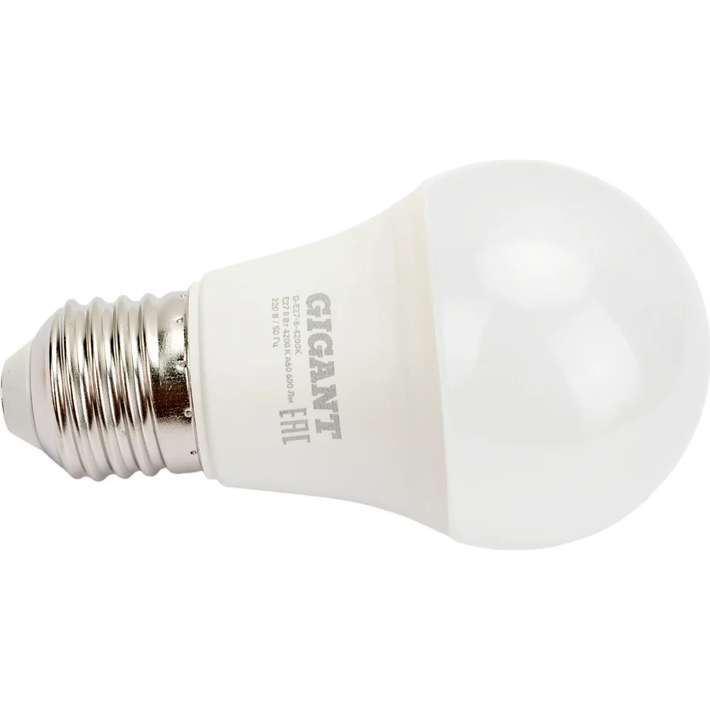 Светодиодная лампа Gigant E27 8Вт 4200К А60 600Лм G-E27-8-4200K является энергосберегающей заменой обычным лампам накаливания. Равномерное распределение света создает зрительный комфорт в любом помещении. Лампа обеспечивает пространство мягким не мерцающим светом и обладает всеми техническими характеристиками европейского уровня.