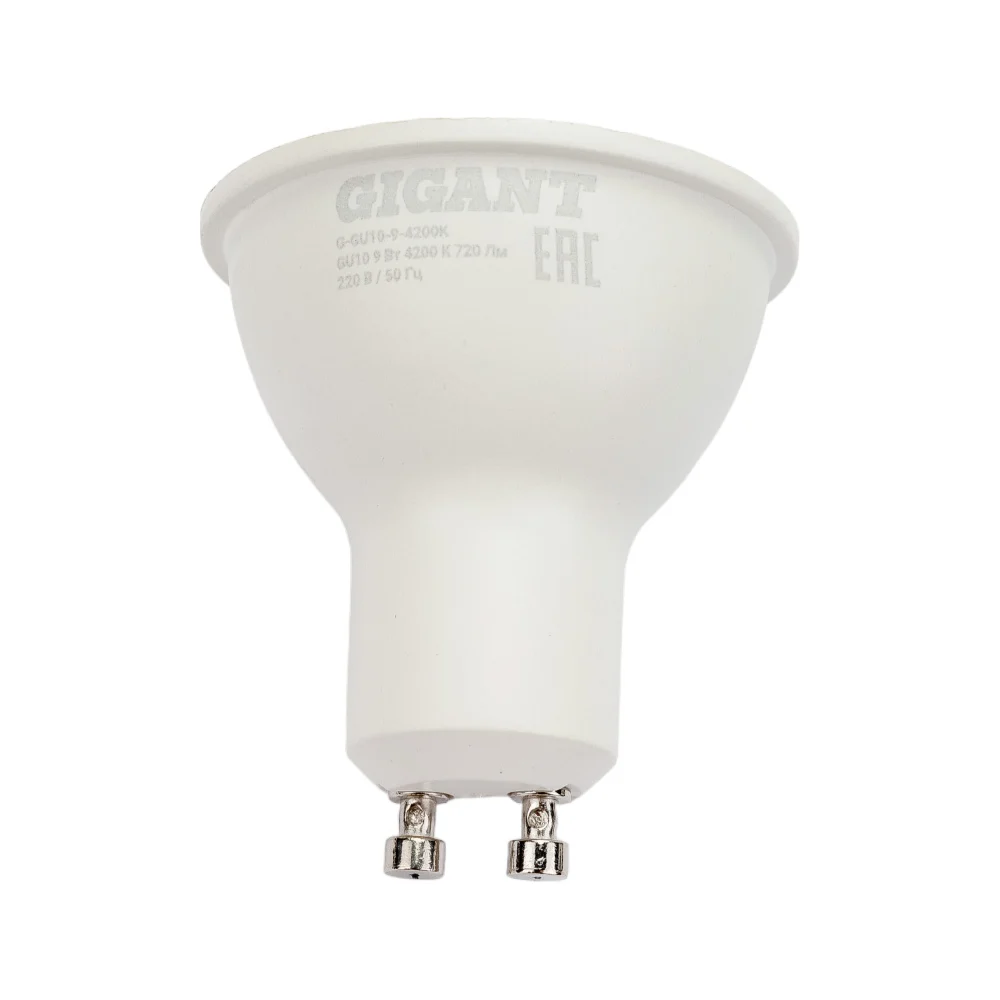 Светодиодная лампа GU10 9Вт 4200K 720Лм Gigant G-GU10-9-4200K - это экономичный осветительный прибор, который используется совместно с точечными светильниками. Изделие обладает цоколем GU10 и матовой колбой из пластика. Лампа излучает естественный белый свет мощностью 9 Вт. Имеет высокий срок службы до 30.000 часов. Конструкция на основе современных светодиодов соответствует классу энергоэффективности А+. Лампа Gigant не вызывает утомления глаз и не оказывает негативного влияния на зрение. Высокий уровень цветопередачи обеспечивает полноценное восприятие оттенков и цветов окружающего пространства.