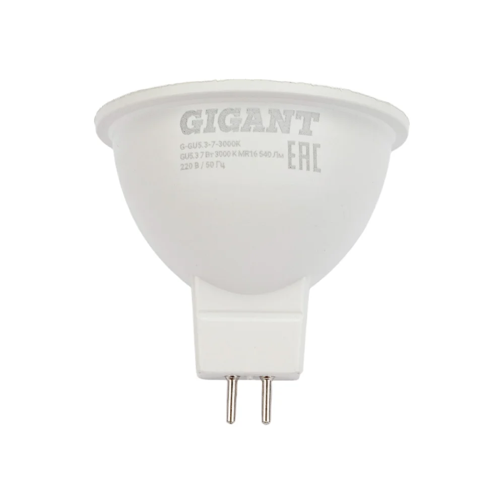 Светодиодная лампа GU5.3 7Вт 3000K MR16 540Лм Gigant G-GU5.3-7-3000K предназначена для использования в приборах наружного и внутреннего освещения квартир, жилых помещений, магазинов и т.п. Малое энергопотребление - в среднем в восемь раз меньше, чем у ламп накаливания аналогичной яркости (класс А). Большой срок службы - работает в 25–35 раз дольше ламп накаливания. Лампа почти не нагревается. Комфортно вкручивать и выкручивать «на горячую». Стабильная яркость освещения при колебаниях напряжения питания.