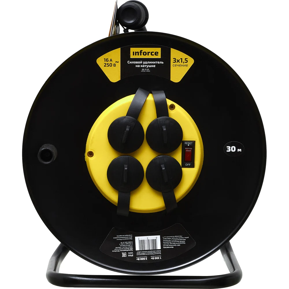 Силовой удлинитель на катушке Inforce 4 гнезда, с/з КГт 3х1,5 16A 30м IP44 GRANITE ZG 09-15-01 предназначен для использования в тяжелых условиях. Удлинитель можно применять на стройках, на производстве, а так же на открытом воздухе. Прочный металлический корпус покрыт специальной порошковой краской. Провод КГ, используемый для удлинителя данного вида, устойчив к механическим повреждениям, так и к повреждениям в результате воздействия низкой температуры воздуха. Удлинители снабжены защитными крышками на розетках, они позволяют защитить контактную группу по стандарту IP44. Безопасность удлинителя обеспечивается за счет наличия термовыключателя, не позволяющего использовать изделие с превышением заявленных характеристик.