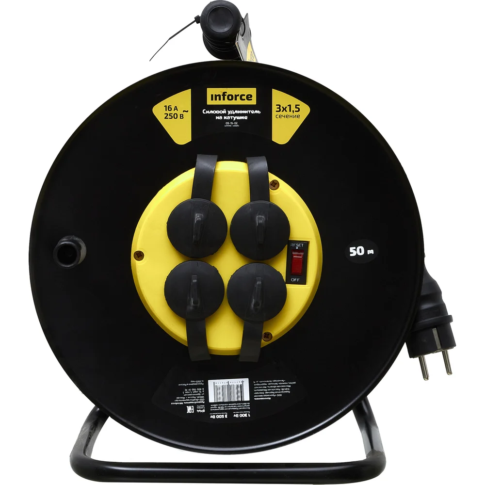 Силовой удлинитель на катушке Inforce 4 гнезда, с/з КГт 3х1,5 16A 50м IP44 GRANITE ZG 09-15-02 предназначен для использования в тяжелых условиях. Удлинитель можно применять на стройках, на производстве, а так же на открытом воздухе. Прочный металлический корпус покрыт специальной порошковой краской. Провод КГ, используемый для удлинителя данного вида, устойчив к механическим повреждениям, так и к повреждениям в результате воздействия низкой температуры воздуха. Удлинители снабжены защитными крышками на розетках, они позволяют защитить контактную группу по стандарту IP44. Безопасность удлинителя обеспечивается за счет наличия термовыключателя, не позволяющего использовать изделие с превышением заявленных характеристик.