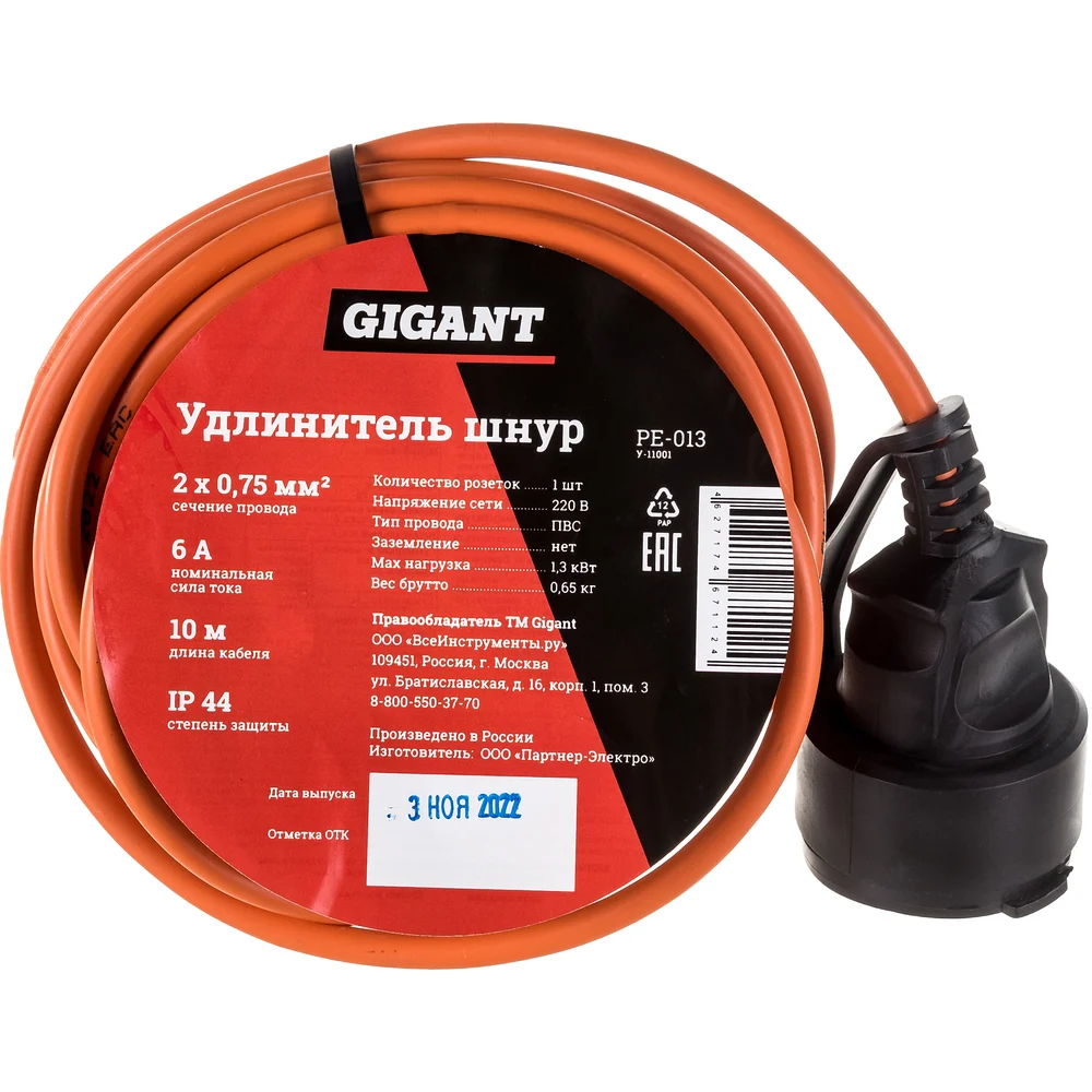 Удлинитель шнур Gigant б/з ПВС 2х0,75 6A 10м IP 44 PE-013 (Россия) предназначен для внутреннего и наружного применения. Служит для удаленного подключения садовой техники к электросети. С помощью данного удлинителя можно с удобством осуществлять обработку газона, уход за растениями, уборку садового или строительного мусора. Удлинитель оснащен одной розеткой 6 А, его длина составляет 10 метров, сечение провода - 2х0,75 мм. Защита IP44 позволяет использовать удлинитель внутри влажных помещений и на улице. Розетка оснащена крышкой, чтобы строительный мусор не попадал в отверстие. ПВС провод состоит из медной проволоки, имеет особо прочную механическую изоляцию. Gigant – собственная торговая марка компании ВсеИнструменты.ру, разработанная специально для требовательных мастеров. Продукция представлена профессиональными и бытовыми инструментами, имеет доступную цену и высокое качество. При изготовлении товаров Gigant используется современное оборудование и прочные материалы. Производство осуществляется на современных предприятиях России и Азии. Тестирование товаров осуществляется в два этапа, каждая партия инструментов проходит проверку на соответствие стандартам и заявленным техническим характеристикам. Это является залогом качества и надежности готового продукта. Продукция представлена широкой линейкой инструментов. У нас можно приобрести ручной инструмент, строительный, садовый, сантехнический, климатический, крепежный, автогаражный, а также станки, расходные материалы и многое другое.