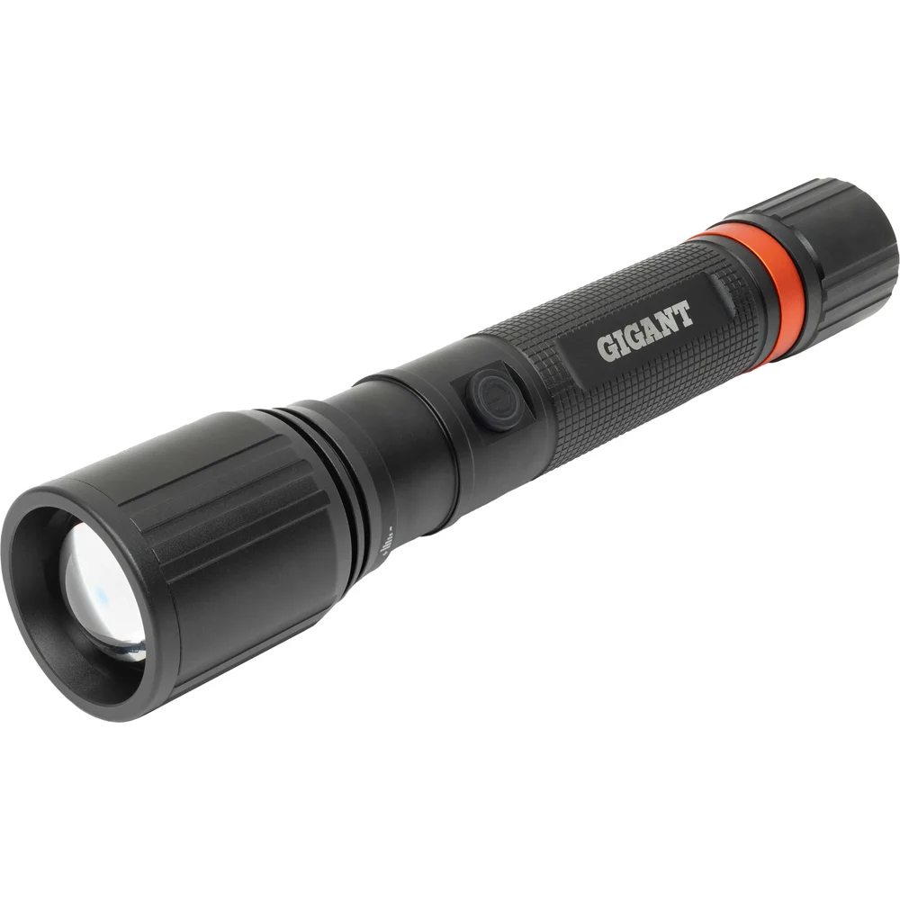 Ручной фонарь Gigant 2000Лм IPX4 профи GHL-2000 - мощный, но компактный фонарь с дальностью освещения до 300м. Он имеет 4 режима работы: высокая мощность свечения, средняя мощность свечения, низкая мощность свечения, режим мерцания (стробоскоп). Корпус из специального алюминиевого сплава по стандарту IPX4 защищает корпус от ударов, влаги, пыли. Может работать при температурах от -30 до +50 °С. У фонаря есть функция фокусировки луча. Тип светодиода: XHP50 Тип питания: Li-Ion 21700 (4000 мАч) или батарейки типа АА - 4шт Время зарядки: 4-5 часов Время работы: 4-7 часов в зависимости от выбранного режима Размер: 48х240 мм Индикатор зарядки: красный свет - идёт зарядка, зеленый свет - устройство заряжено.