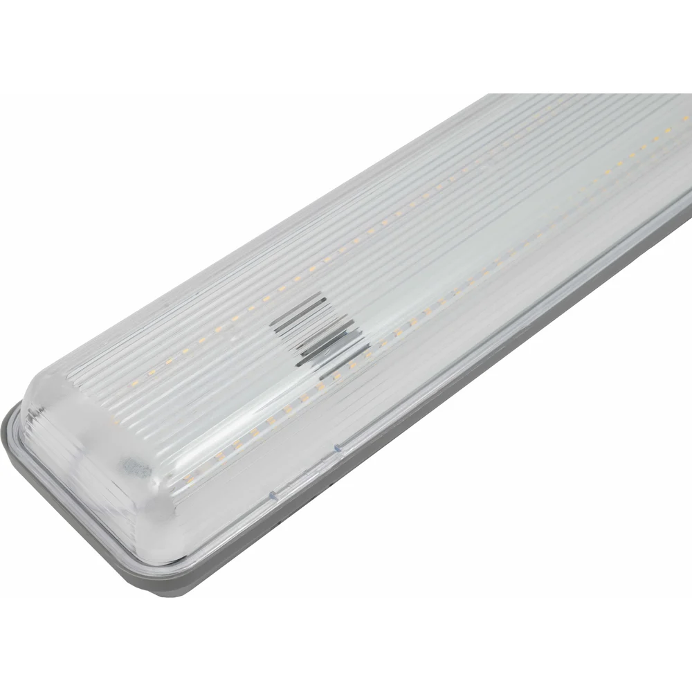 Промышленный светодиодный светильник Gigant 74Вт 9500Лм IP65 GL-01-02 представляет собой надежное решение для освещения производственных помещений. Он оснащен встроенными светодиодами, что исключает необходимость в замене лампочек и обеспечивает долговечность эксплуатации. Светильник обладает мощностью 74 Вт и световым потоком 9500 люмен, что гарантирует яркое и равномерное освещение. Не требует обслуживания. Преимущества: Корпус выполнен из металла и ABS-пластика, что обеспечивает прочность и устойчивость к внешним воздействиям. Защита по стандарту IP65 позволяет использовать его в сложных условиях, защищая от пыли и влаги. Подходит для работы как в отапливаемых и неотапливаемых помещениях, так и на открытом воздухе, температурный рабочий диапазон составляет -15/+50 °С. Цветовая температура 5000К обеспечивает холодный белый свет, создавая комфортные условия для работы. Светильник имеет накладной тип крепления и подходит для установки на потолок, что делает его универсальным в использовании. Рассеиватель прозрачный, что позволяет распределить свет более плавно по помещению без резких теней. В комплекте крепежные клипсы для монтажа светильника. Класс энергоэффективности А+. Дополнительные характеристики: Частота сети: ~50/60 Гц Входное напряжение: 170-260 В