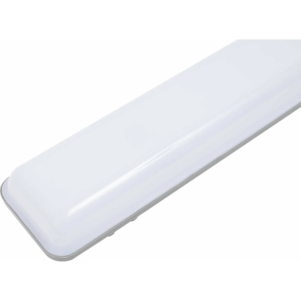Промышленный светодиодный светильник Gigant 38Вт 5000Лм IP65 GL-01-04 представляет собой надежное решение для освещения производственных помещений. Он оснащен встроенными светодиодами, что исключает необходимость в замене лампочек и обеспечивает долговечность эксплуатации. Светильник обладает мощностью 38 Вт и световым потоком 5000 люмен, что гарантирует яркое и равномерное освещение. Преимущества: Корпус выполнен из металла и ABS-пластика, что обеспечивает прочность и устойчивость к внешним воздействиям. Защита по стандарту IP65 позволяет использовать его в сложных условиях, защищая от пыли и влаги. Подходит для работы как в отапливаемых и неотапливаемых помещениях, так и на открытом воздухе, температурный рабочий диапазон составляет -15/+50 °С. Цветовая температура 5000К обеспечивает естественный белый свет, создавая комфортные условия для работы. Светильник имеет накладной тип крепления и подходит для установки на потолок, что делает его универсальным в использовании. В комплекте крепежные клипсы для монтажа светильника. Рассеиватель матовый, что позволяет распределить свет более плавно по помещению без резких теней. Класс энергоэффективности А+. Дополнительные характеристики: Частота сети: ~50/60 Гц Входное напряжение: 170-260 В