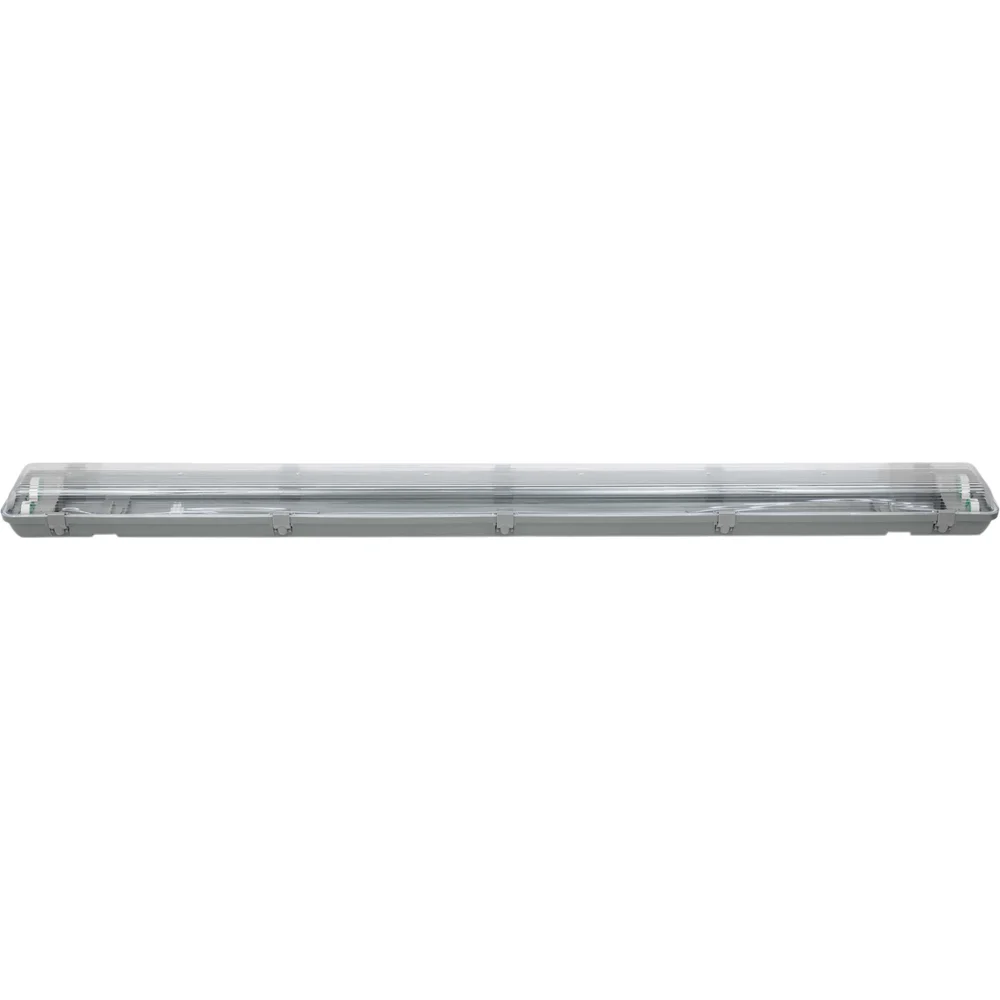 Промышленный светодиодный светильник Gigant T8x2 цоколь G13 (без лампы) IP65 GL-01-05 предназначен для использования с 2 лампами LED T8 (в комплект не входят). Данная модель используется для основного или вспомогательного освещения на промышленных объектах с повышенным содержанием пыли и влаги и внешнего освещения открытых строительных площадок благодаря ударопрочному корпусу со степенью защиты IP65 и широкому диапазону рабочих температур от -15 до +50°С. Входящий в комплект набор универсальной крепежной фурнитуры позволяет легко монтировать светильник накладным способом на вертикальные и горизонтальные поверхности. Преимущества: Корпус выполнен из ABS-пластика, что обеспечивает прочность и устойчивость к внешним воздействиям. Защита по стандарту IP65 позволяет использовать его в сложных условиях, защищая от пыли и влаги. Подходит для работы как в отапливаемых и неотапливаемых помещениях, так и на открытом воздухе, температурный рабочий диапазон составляет -15/+50 °С. Светильник имеет накладной тип крепления и подходит для установки на потолок, что делает его универсальным в использовании. Рассеиватель прозрачный, что позволяет распределить свет более плавно по помещению без резких теней. В комплекте крепежные клипсы для монтажа светильника. Класс энергоэффективности А+. Дополнительные характеристики: Частота сети: ~50/60 Гц Входное напряжение: 220-230 В Максимальная мощность ламп: 80 Вт (2х40 Вт) Вес: 0,93 кг Габариты светильника: 1273х110х71 мм.