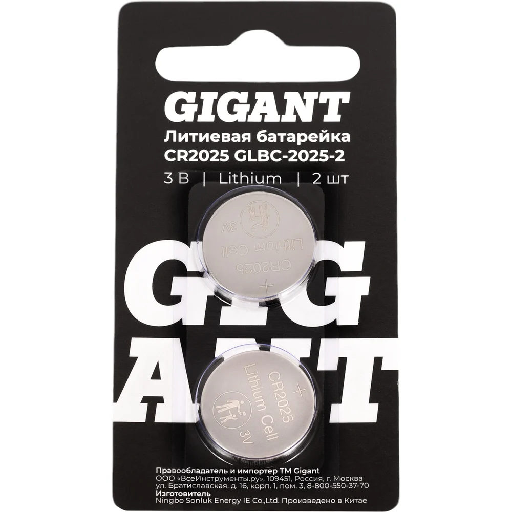 Литиевая батарейка Gigant Lithium CR2025 2 шт. GLBC-2025-2