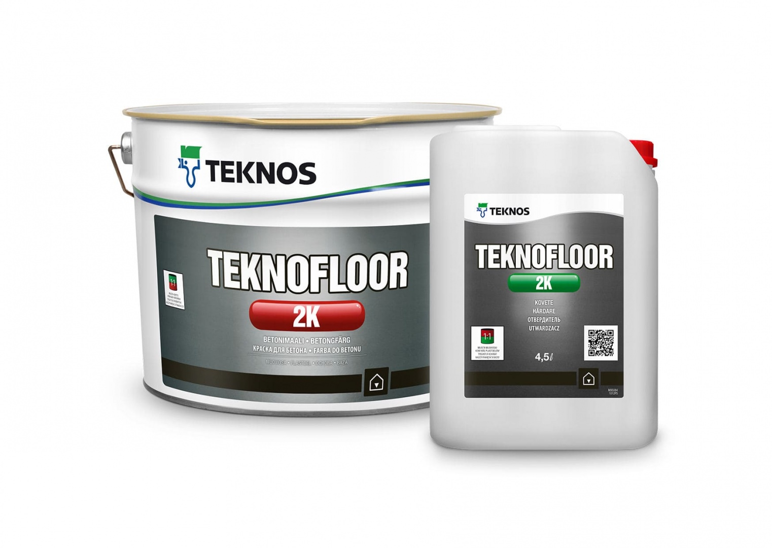 Основа 1:1 с отвердителем Teknofloor 2K Kovete. Для грунтовки разбавить краску водой на 5-10%.