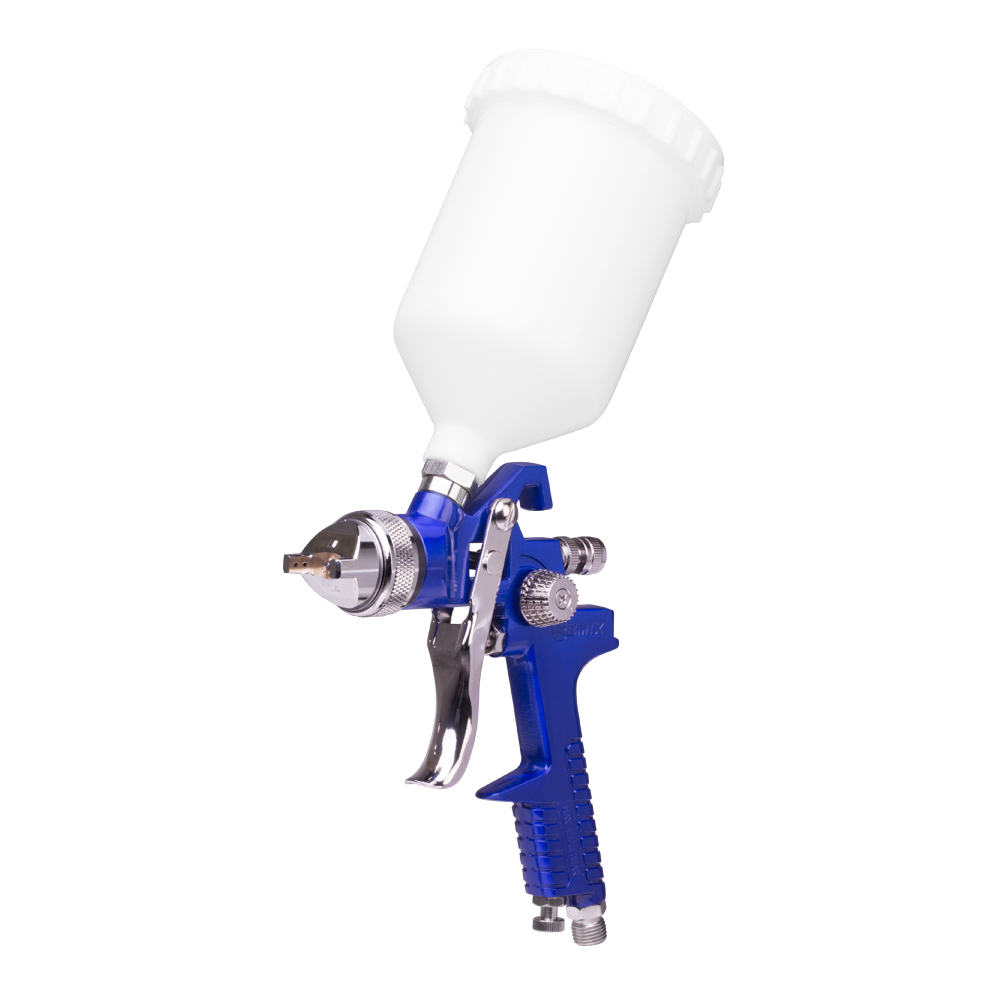 Универсальный окрасочный пистолет REMIX H-827 системы HVLP с верхним бачком. Рекомендован как для финишных работ, так и для нанесения грунтов-порозаполнителей. Используется для нанесения различных лакокрасочных покрытий, таких как однокомпонентные базовые краски, двухкомпонентные акриловые краски, лаки, грунты-порозаполнители, антикоррозийные грунты и т. д. Применяется также для нанесения красок на водной основе.Латунная распыляющая головка обладает высокой износостойкостью. Дюза и игла сделаны из нержавеющей стали, корпус анодирован.