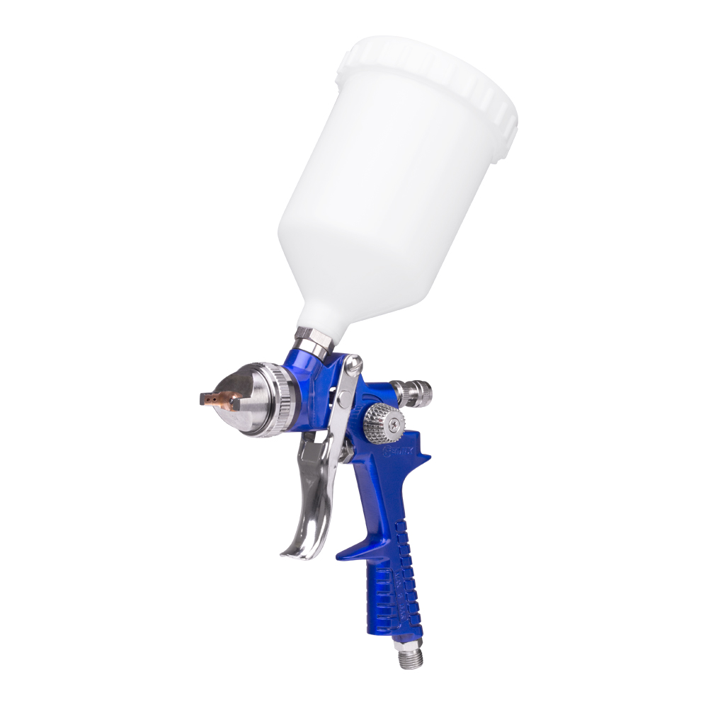 Универсальный окрасочный пистолет REMIX H-881 системы HVLP с верхним бачком. Рекомендован как для финишных работ, так и для нанесения грунтов-порозаполнителей. Используется для нанесения различных лакокрасочных покрытий, таких как однокомпонентные базовые краски, двухкомпонентные акриловые краски, лаки, грунты-порозаполнители, антикоррозийные грунты и т. д. Применяется также для нанесения красок на водной основе.Латунная распыляющая головка обладает высокой износостойкостью. Дюза и игла сделаны из нержавеющей стали, корпус анодирован.