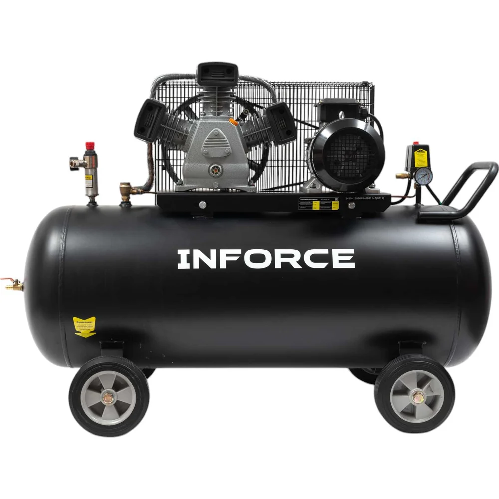 Ременной компрессор Inforce BCX-200L-3P применяется для покрасочных работ, накачки шин, продувки фильтров и выполнения других подобных операций с использованием пневмоинструмента. Аппарат оснащен двухсотлитровым ресивером, что существенно сокращает интенсивность рабочих циклов. Наличие специальной опоры с наконечниками из нескользящего материала гарантирует высокую устойчивость компрессора в процессе его эксплуатации.