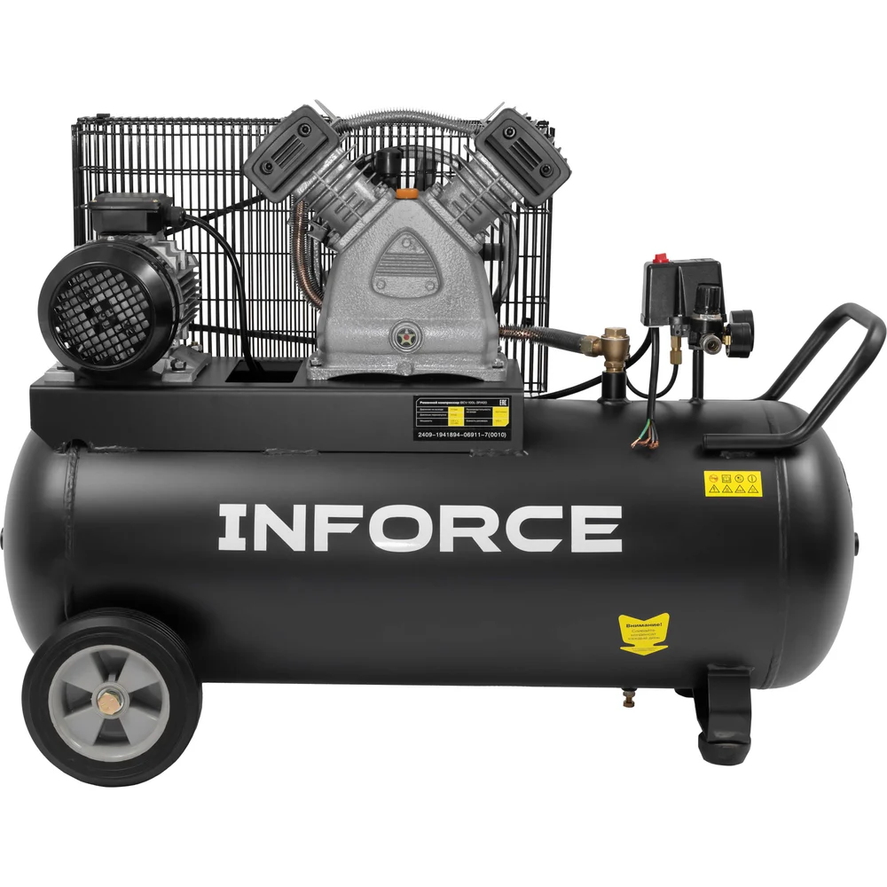 Ременной компрессор Inforce IBCV-100L-3P/420 применяется в авторемонтном деле и строительстве. Такой агрегат служит для подкачки шин, покраски фасадов зданий, чистки фильтров и других работ с использованием устройств, имеющих пневматический принцип действия (краскопульты, гайковерты, продувочные пистолеты). Компрессор этой модели рассчитан на питание от трехфазной сети с напряжением 380 В и частотой 50 Гц.