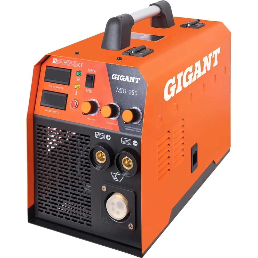 Сварочный полуавтомат - инвертор Gigant MIG-250 подойдет для профессионального выполнения сварочных операций на производстве или строительной площадке при больших объемах работ. Модель удобно переносить с собой за счет наличия эргономичной рукоятки. Информативная панель управления упрощает контроль за устройством и позволяет точно настроить рабочие параметры. Прочный корпус надежно защищает внутренние компоненты от повреждений. Откидная боковая панель открывает доступ к катушке с проволокой. Взять в аренду