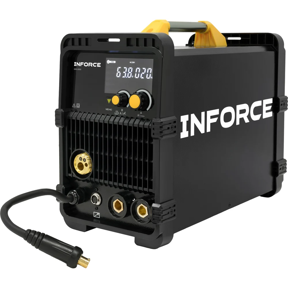 Сварочный полуавтомат-инвертор Inforce IMIG-200S - универсальная модель. Есть возможность использовать разные режимы сварки: MMA, MIG-MAG, TIG lift; 2/4-тактный режим работы MIG горелки.