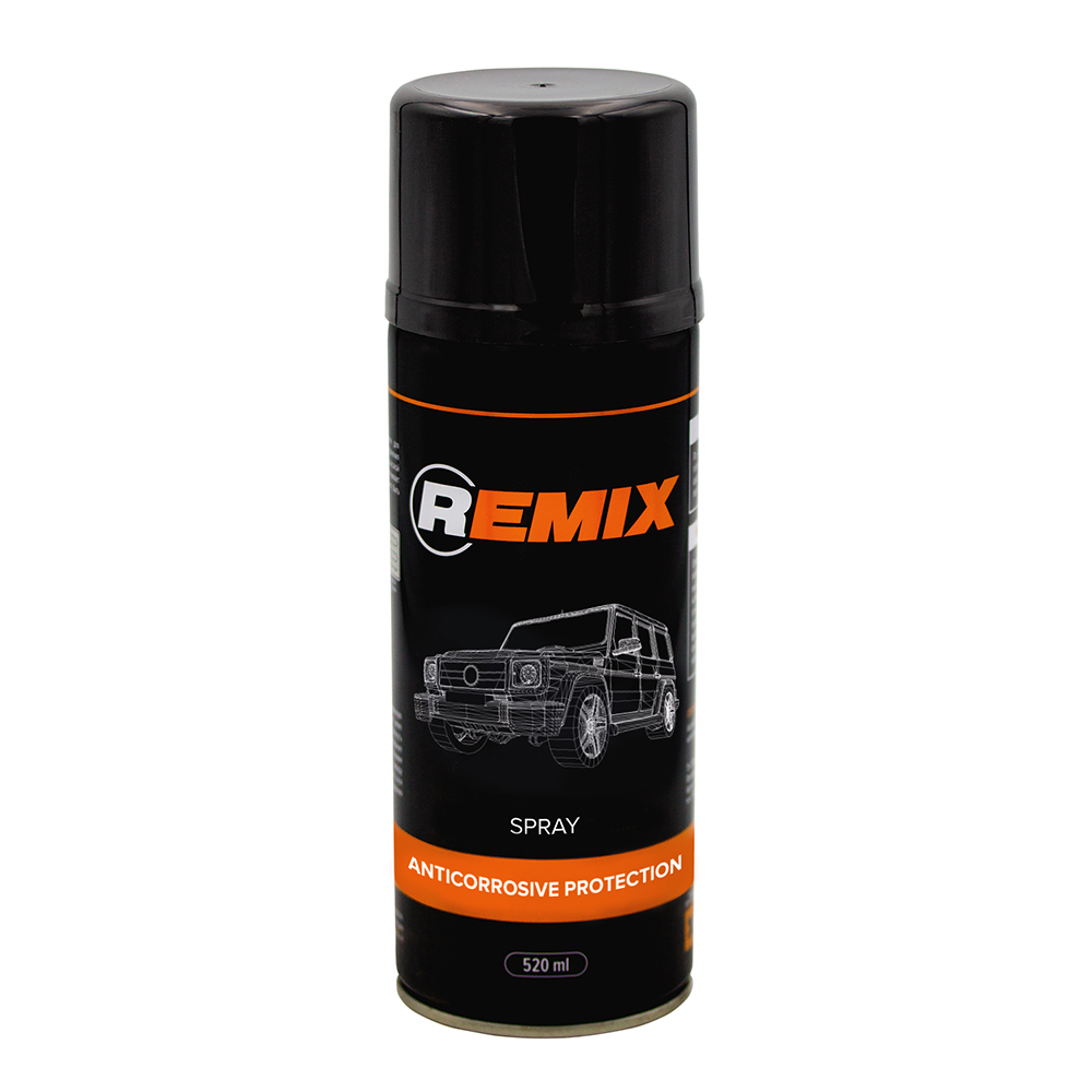 ANTICORROSIVE PROTECTION REMIX - антикоррозийный состав на основе битума. Предназначен для защиты днища, арок и других нижних частей автомобиля от коррозии, воздействий песка и гравия. Имеет отличную адгезию к различным поверхностям, остается постоянно эластичным. Не может быть окрашен.