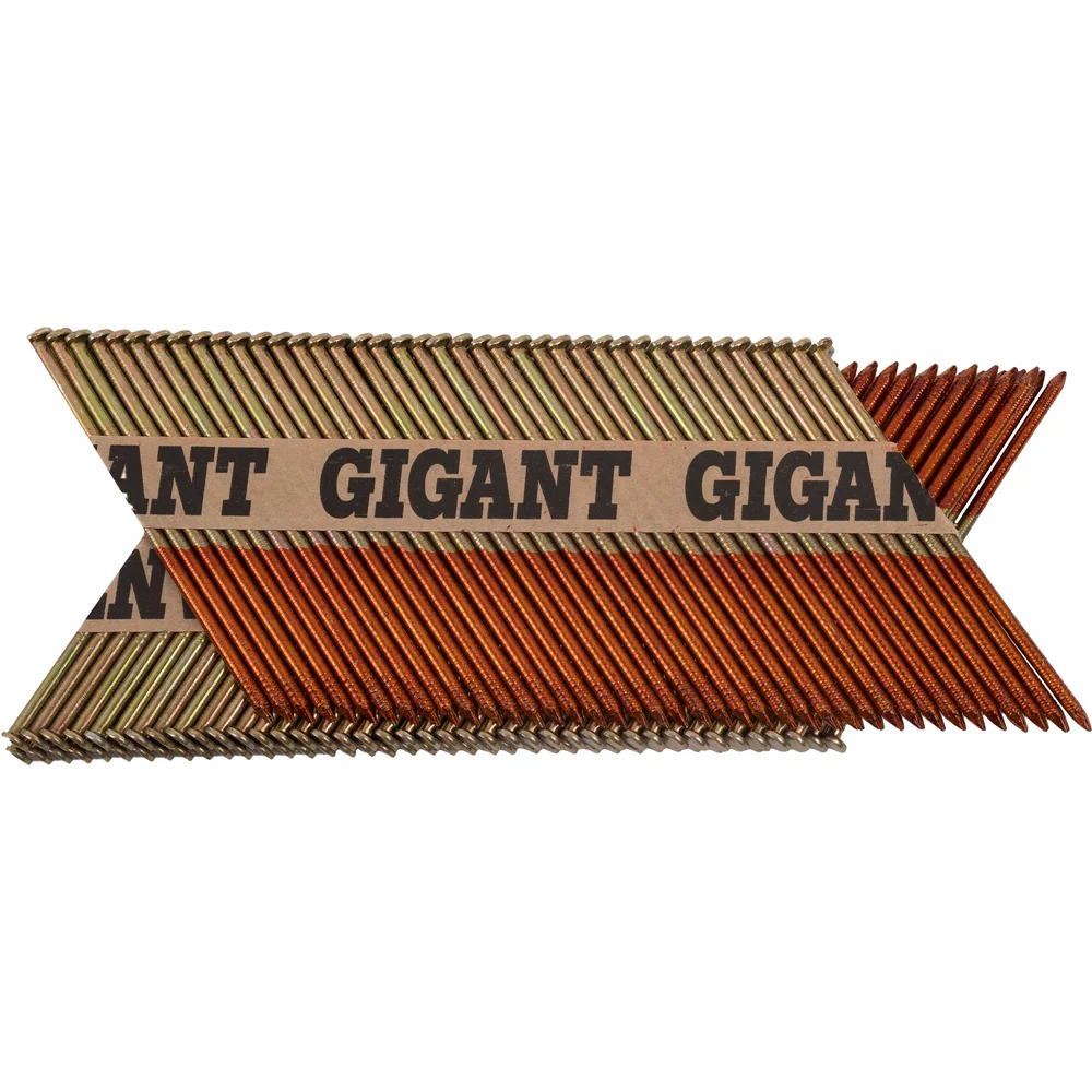 Реечный гвоздь по дереву Gigant GGR-90-3RH используется в строительстве (сборке стропильных систем, деревянных каркасов), упаковочных работах и иных сферах. Рифленый стержень обеспечивает надежное сцепление с материалом, предотвращая выскальзывание. Упаковка из 2000 штук делает их экономичным выбором для крупных проектов. Гальваническое покрытие защищает гвозди от коррозии и позволяет использовать их даже в агрессивных средах. Расположены под углом 34 градуса, это позволяет не задевать шляпку соседнего гвоздя при монтаже и увеличивает срок службы пистолета. В комплекте 50 кассет на бумаге, в каждой кассете по 40 гвоздей. Могут использоваться с газовыми или аккумуляторными пистолетами большинства производителей, представленных на рынке (Hybest, Fubag, Зубр, Metabo и др.). Кольцевая накатка обеспечивает повышенное сцепление с древесиной. Бумажная основа и клей подобраны таким образом, что кассеты не разбиваются при падении, а при монтаже бумага полностью отделяется с гвоздем и не застревает в обойме.