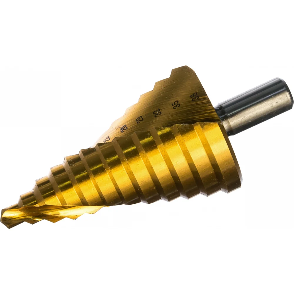 Ступенчатое сверло Gigant GSD 11051 предназначено для получения отверстий различного диаметра без перестановки режущего инструмента. На каждой ступени есть маркировка фактического диаметра. Рекомендуется использовать при работе с материалом до 3 мм. Количество ступеней - 12 штук. Диаметр ступеней: 6-9-13-16-19-21-23-26-29-32-35-38 мм. Данный товар поставляется взамен Ступенчатое сверло 6-38 мм Inforce 11-01-051. Советы по применению: Если конусное сверло имеет ярко-золотистый цвет, то по этому признаку можно идентифицировать наличие износостойкой поверхности состоящей из нитрида титана. Тип материала является самым прочным, что даёт высокие показатели в плане эксплуатации. Сверление металла производить на малых оборотах. Чем больший диаметр отверстия необходимо сделать, тем медленнее должен вращаться режущий инструмент. Идеально для выполнения данной задачи подходит шуруповёрт. Следует смазать сверло небольшим количеством машинного масла, чтобы снизить рабочую температура инструмента во время работы. Gigant – собственная торговая марка компании ВсеИнструменты.ру, разработанная специально для требовательных мастеров. Продукция представлена профессиональными и бытовыми инструментами, имеет доступную цену и высокое качество. При изготовлении товаров Gigant используется современное оборудование и прочные материалы. Производство осуществляется на современных предприятиях России и Азии. Тестирование товаров осуществляется в два этапа, каждая партия инструментов проходит проверку на соответствие стандартам и заявленным техническим характеристикам. Это является залогом качества и надежности готового продукта. Продукция представлена широкой линейкой инструментов. У нас можно приобрести ручной инструмент, строительный, садовый, сантехнический, климатический, крепежный, автогаражный, а также станки, расходные материалы и многое другое.