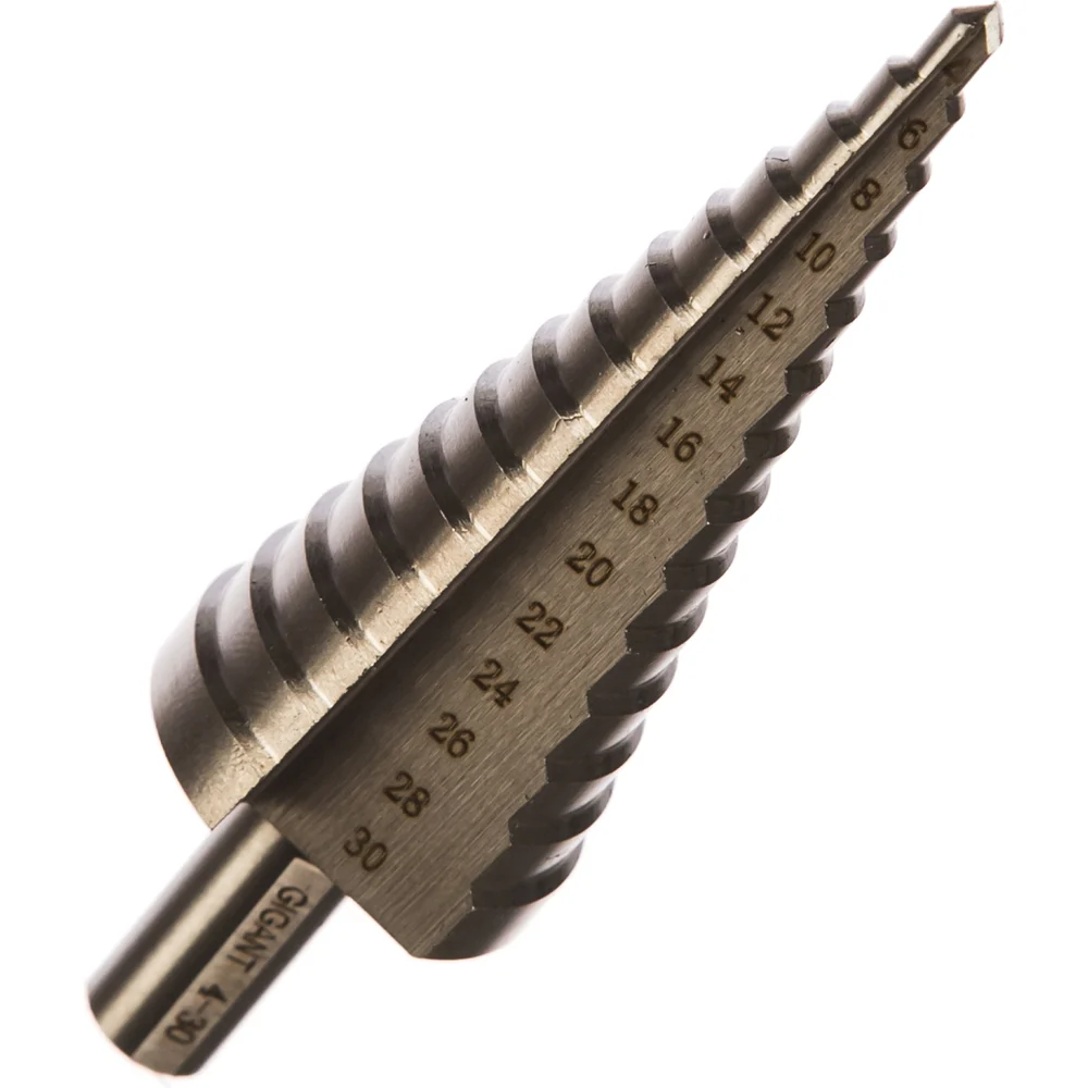 Сверло ступенчатое Gigant GSD 11053 предназначено для получения отверстий различного диаметра без перестановки режущего инструмента. На каждой ступени есть маркировка фактического диаметра. Сверло изготовлено из прочной быстрорежущей HSS стали. Количество ступеней - 14 шт. Диаметр ступеней: 4-6-8-10-12-14-16-18-20-22-24-26-28-30 мм. Сверло имеет цилиндрический тип хвостовика с 3 гранями. Gigant – собственная торговая марка компании ВсеИнструменты.ру, разработанная специально для требовательных мастеров. Продукция представлена профессиональными и бытовыми инструментами, имеет доступную цену и высокое качество. При изготовлении товаров Gigant используется современное оборудование и прочные материалы. Производство осуществляется на современных предприятиях России и Азии. Тестирование товаров осуществляется в два этапа, каждая партия инструментов проходит проверку на соответствие стандартам и заявленным техническим характеристикам. Это является залогом качества и надежности готового продукта. Продукция представлена широкой линейкой инструментов. У нас можно приобрести ручной инструмент, строительный, садовый, сантехнический, климатический, крепежный, автогаражный, а также станки, расходные материалы и многое другое.