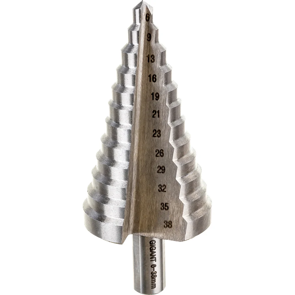 Сверло ступенчатое 6-38 мм, HSS Gigant GT-163 предназначено для получения отверстий различного диаметра без перестановки режущего инструмента. На каждой ступени есть маркировка фактического диаметра. Количество ступеней - 12 штук. Диаметр ступеней - 6-9-13-16-19-21-23-26-29-32-35-38 мм. На каждой ступени есть маркировка фактического диаметра. Сверло изготовлено из быстрорежущей стали HSS. Трёхгранный хвостовик предотвращает проворачивание оснастки в патроне инструмента. Gigant – собственная торговая марка компании ВсеИнструменты.ру, разработанная специально для требовательных мастеров. Продукция представлена профессиональными и бытовыми инструментами, имеет доступную цену и высокое качество. При изготовлении товаров Gigant используется современное оборудование и прочные материалы. Производство осуществляется на современных предприятиях России и Азии. Тестирование товаров осуществляется в два этапа, каждая партия инструментов проходит проверку на соответствие стандартам и заявленным техническим характеристикам. Это является залогом качества и надежности готового продукта. Продукция представлена широкой линейкой инструментов. У нас можно приобрести ручной инструмент, строительный, садовый, сантехнический, климатический, крепежный, автогаражный, а также станки, расходные материалы и многое другое.