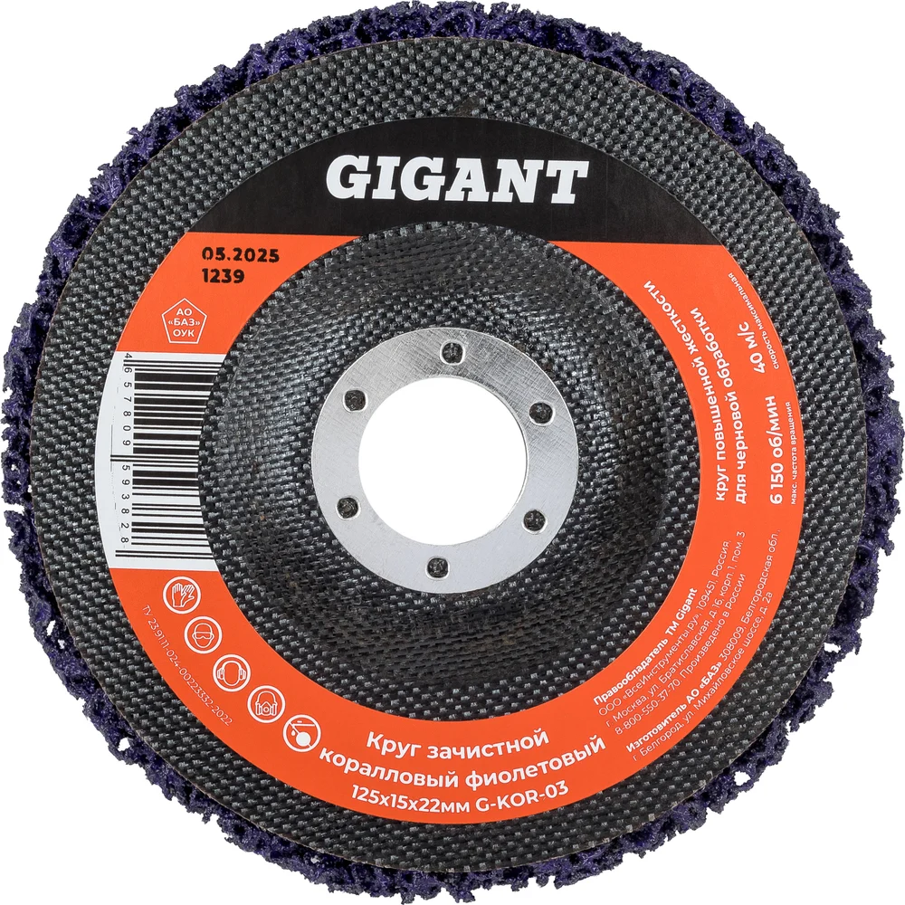 Диск абразивный коралловый фиолетовый 125х22 мм, 5 шт Gigant G-KOR-03-5 предназначен для работы: По керамике По металлу По нержавеющей стали По дереву По краске По стройматериалам По алюминию