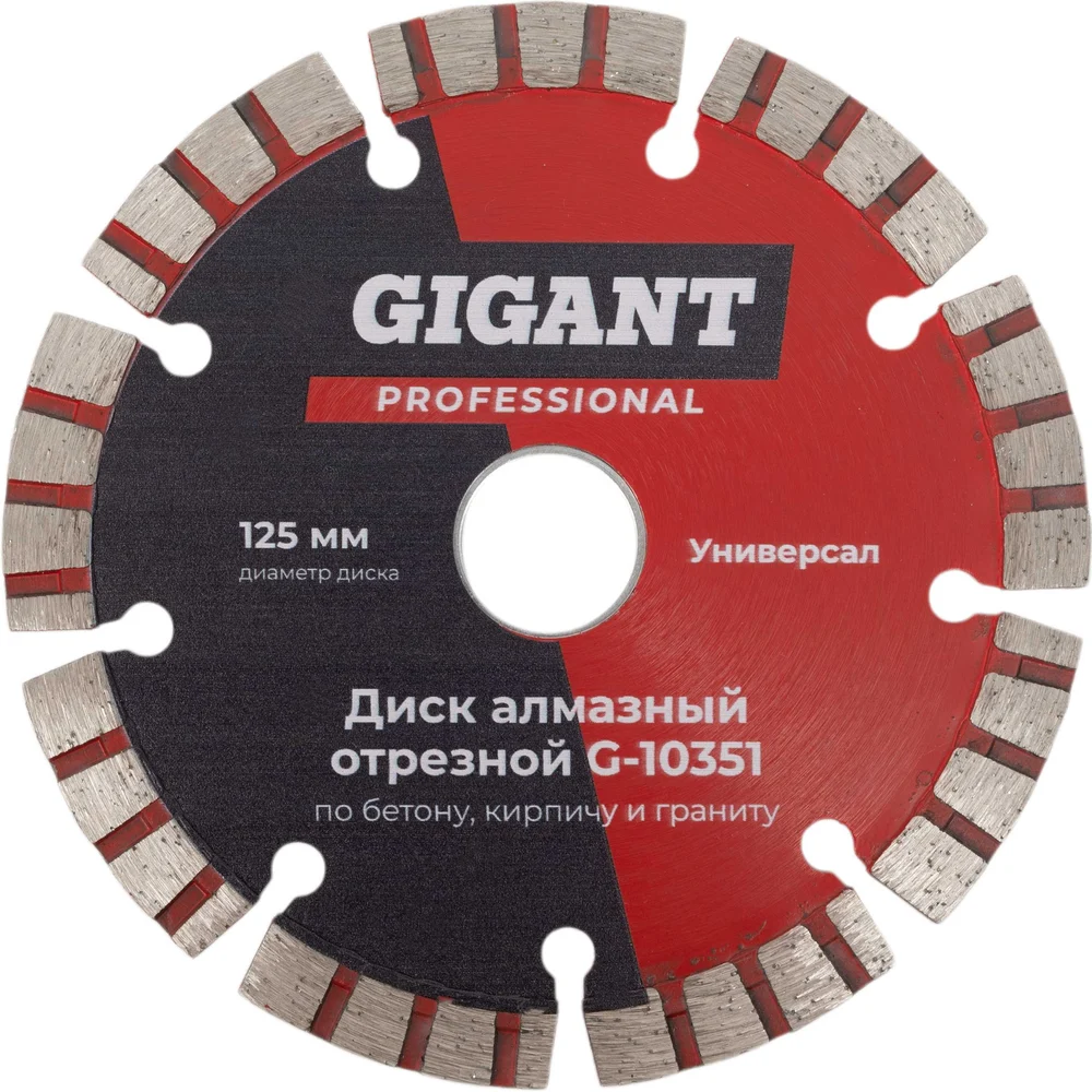 Диск алмазный отрезной Gigant G-10351 предназначен для эффективной резки бетона, кирпича и гранита. С диаметром 125 мм и посадочным диаметром 22.2 мм, он обеспечивает надежную фиксацию и стабильную работу. Сегментированный тип диска с 9 сегментами позволяет выполнять сухую резку, что удобно в условиях, где использование охлаждающей жидкости ограничено. Толщина диска составляет 2.4 мм, что способствует точности и аккуратности реза. Высота алмазного слоя в 10 мм гарантирует длительный срок службы и высокую производительность. Максимальная частота вращения 12250 об/мин обеспечивает быструю и эффективную работу, что делает этот диск идеальным выбором для профессионалов, работающих с твердыми строительными материалами.