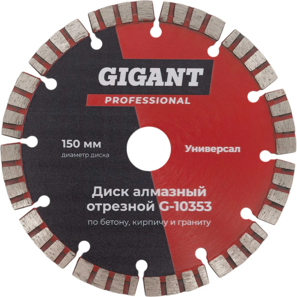 Диск алмазный отрезной Gigant G-10353 диаметром 150 мм предназначен для работы с бетоном, кирпичом и гранитом. Этот сегментированный диск обеспечивает высокую производительность и долговечность благодаря алмазному слою высотой 10 мм. Посадочный диаметр 22.2 мм позволяет легко устанавливать диск на большинство стандартных инструментов.
