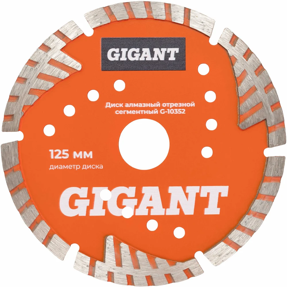 Диск алмазный отрезной сегментный с защитными сект, 125x22,2 мм сухая резка Gigant G-10352 применяется для сухой резки бетона разной прочности, камня, кирпича, шлакоблока и тротуарной плитки. Он используется как оснастка для углошлифовальных машин с соответствующим посадочным диаметром. Диск изготовлен методом холодного прессования и выдерживает повышенные нагрузки при прохождении арматуры в слабоармированном железобетоне.