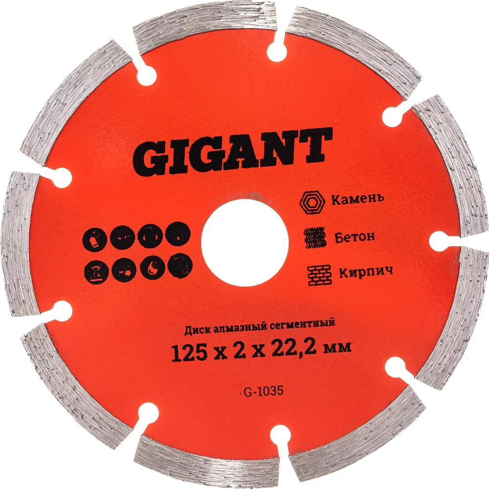 Диск алмазный сегментный Gigant G-1035 предназначен для угловых шлифовальных машин. Применяется для сухого/мокрого реза бетона, камня, кирпича, бордюрного камня, тротуарной плитки, черепицы, песчаника, мрамора, шамота, пенобетона. Диск обеспечивает качественный быстрый рез. Снабжен прорезями для отвода тепла и эффективного извлечения пыли из зоны реза. Оптимально подобранная связка гарантирует эффективность работы и высокий ресурс диска. Gigant – собственная торговая марка компании ВсеИнструменты.ру, разработанная специально для требовательных мастеров. При изготовлении товаров Gigant используется современное оборудование и прочные материалы. Производство осуществляется на современных предприятиях России и Азии. Тестирование товаров осуществляется в два этапа, каждая партия инструментов проходит проверку на соответствие стандартам и заявленным техническим характеристикам. Это является залогом качества и надежности готового продукта. Продукция представлена широкой линейкой инструментов. У нас можно приобрести ручной инструмент, строительный, садовый, сантехнический, климатический, крепежный, автогаражный, а также станки, расходные материалы и многое другое.
