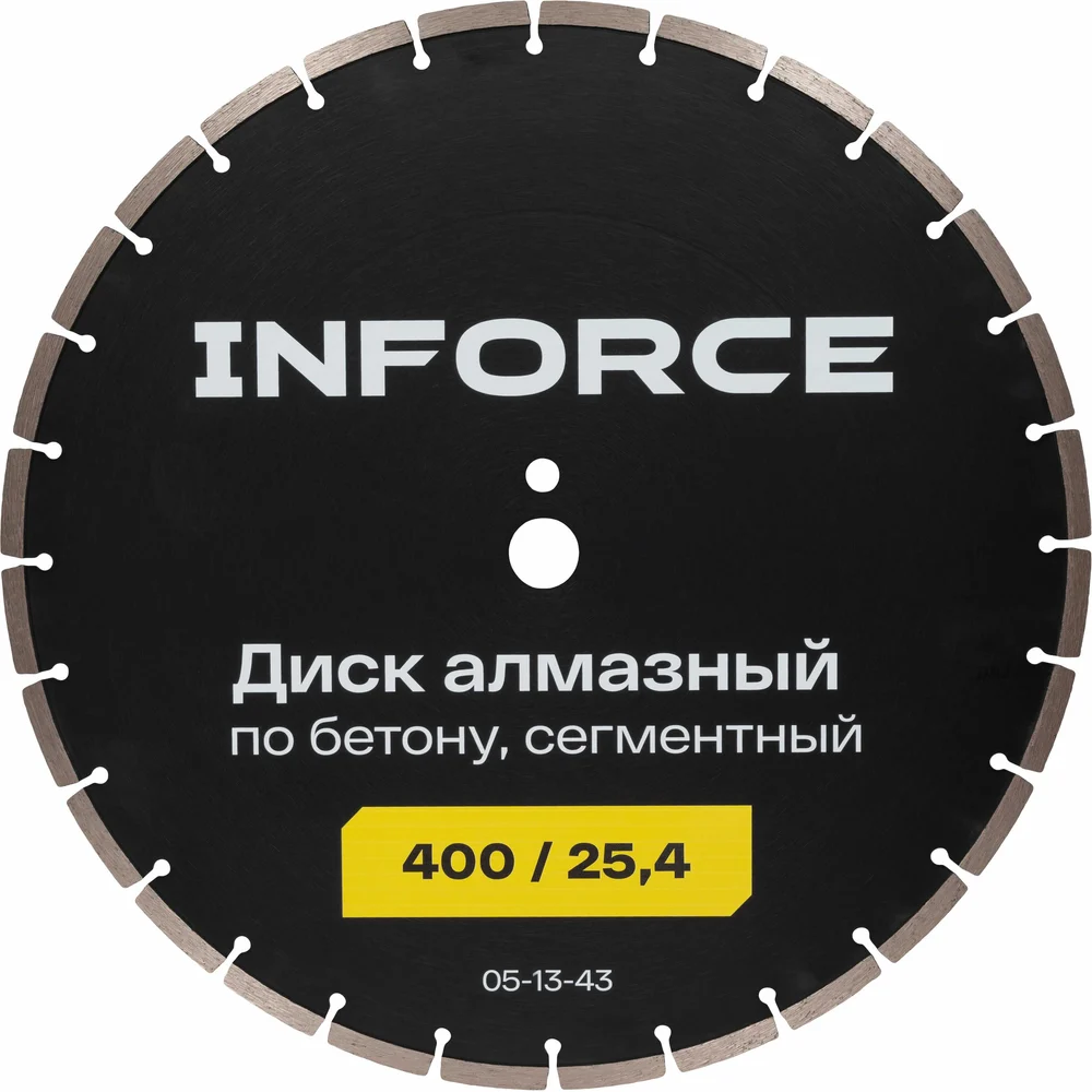 Диск алмазный по бетону сегментный 400/25,4 Inforce 05-13-43 применяется для резки на швонарезчиках, бензорезах и станках таких материалов как : бетон бетон со слабым и средним уровнем армирования кирпич песчаник тротуарная плитка Имеет высоту алмазного сегмента 10 мм ,что не мало важный фактор для высокой производительности алмазного инструмента. Подходит для работы как с водяным охлаждением так и без него