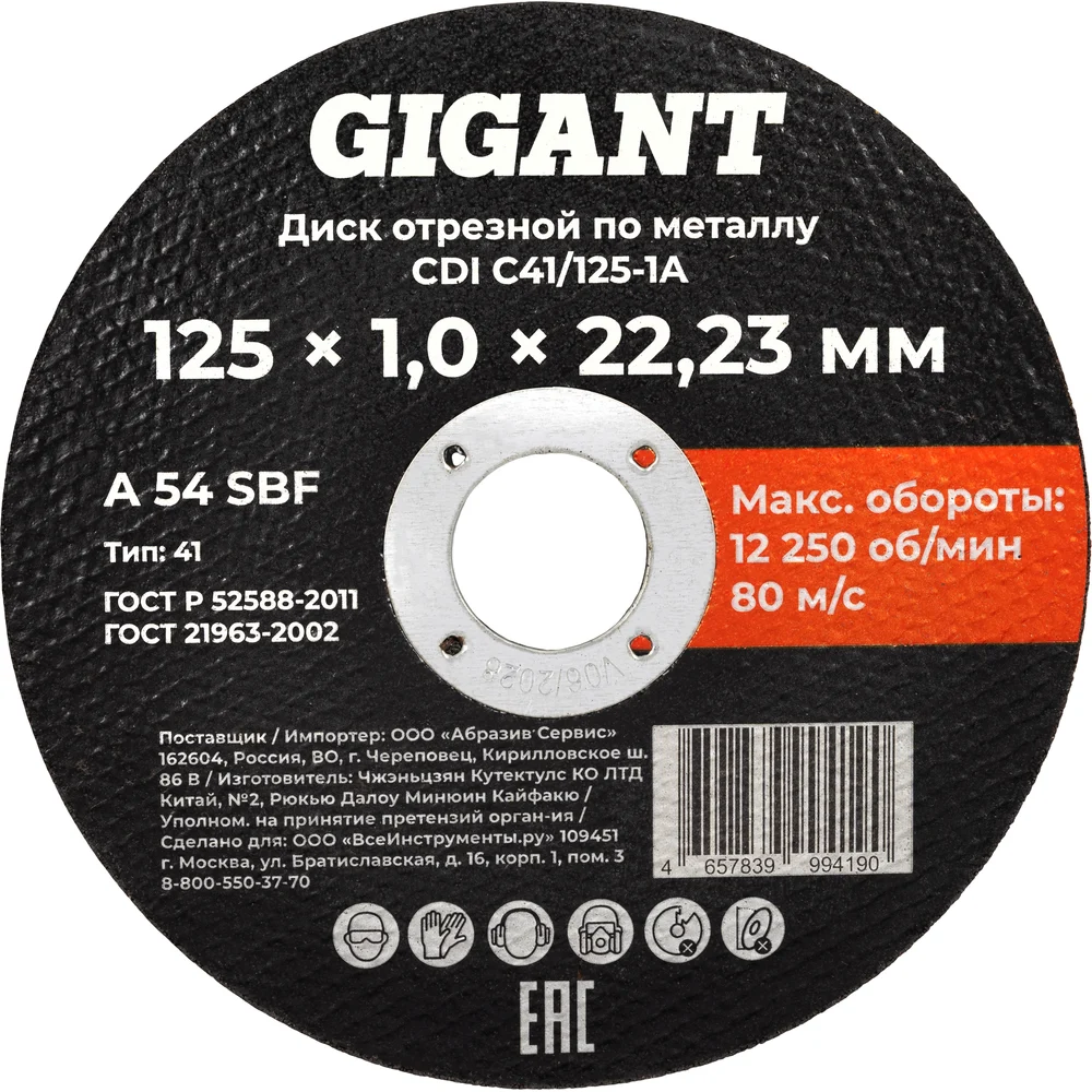 Диск отрезной по металлу 125x1x22 Gigant CDI C41/125-1A является сменным элементом для угловых шлифовальных машин. Применяется для реза по металлу. Диск обладает высокой производительностью и большим ресурсом работы. Оснастка изготавливается на современном оборудовании под строгим контролем качества. Небольшая толщина - 1 мм позволяет работать быстро и аккуратно, без большого количества отходов.