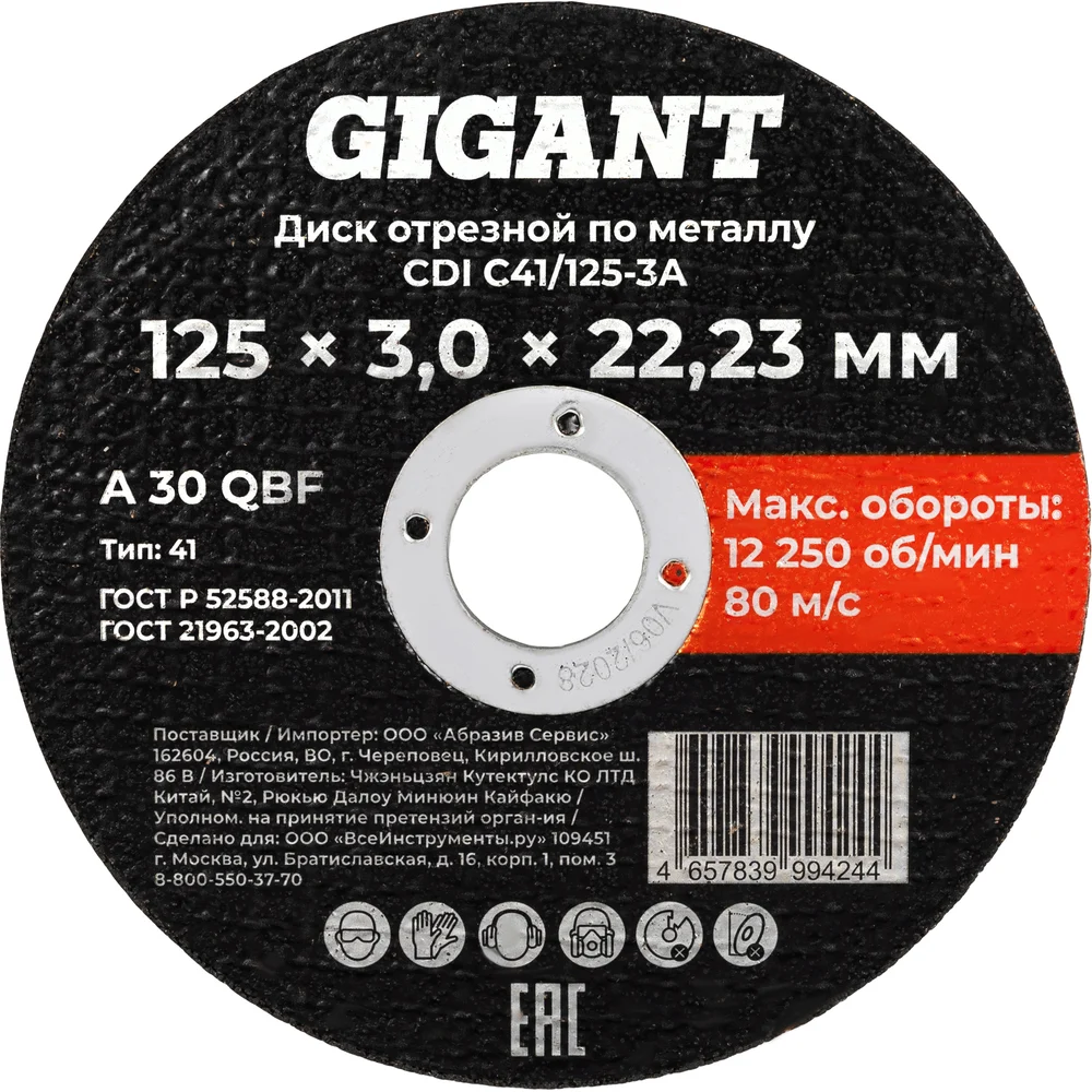 Диск отрезной по металлу 125x3x22 Gigant CDI C41/125-3A является сменным элементом для угловых шлифовальных машин. Применяется для реза по металлу. Диск обладает высокой производительностью и большим ресурсом работы. Оснастка изготавливается на современном оборудовании под строгим контролем качества.