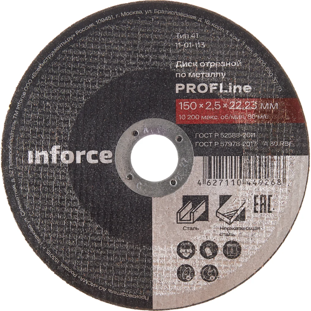 Диск отрезной Inforce 11-01-113 является сменным элементом для угловых шлифовальных машин. Применяется для резки металлических изделий. Диск обладает высокой производительностью и большим ресурсом работы. Оснастка изготавливается на современном оборудовании под строгим контролем качества. Инструкция по эксплуатации