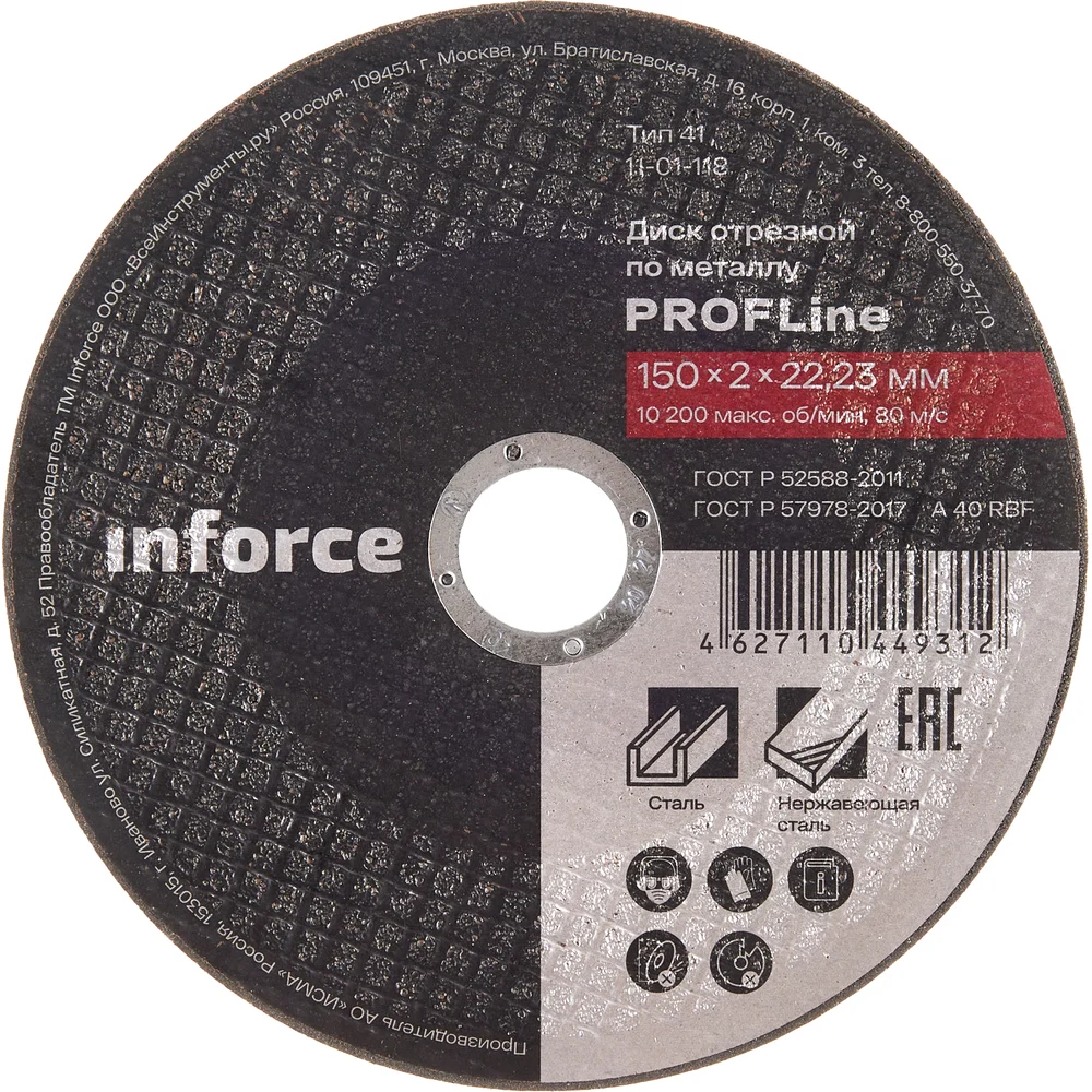 Диск отрезной Inforce 11-01-118 является сменным элементом для угловых шлифовальных машин. Применяется для резки металлических изделий. Диск обладает высокой производительностью и большим ресурсом работы. Оснастка изготавливается на современном оборудовании под строгим контролем качества. Инструкция по эксплуатации