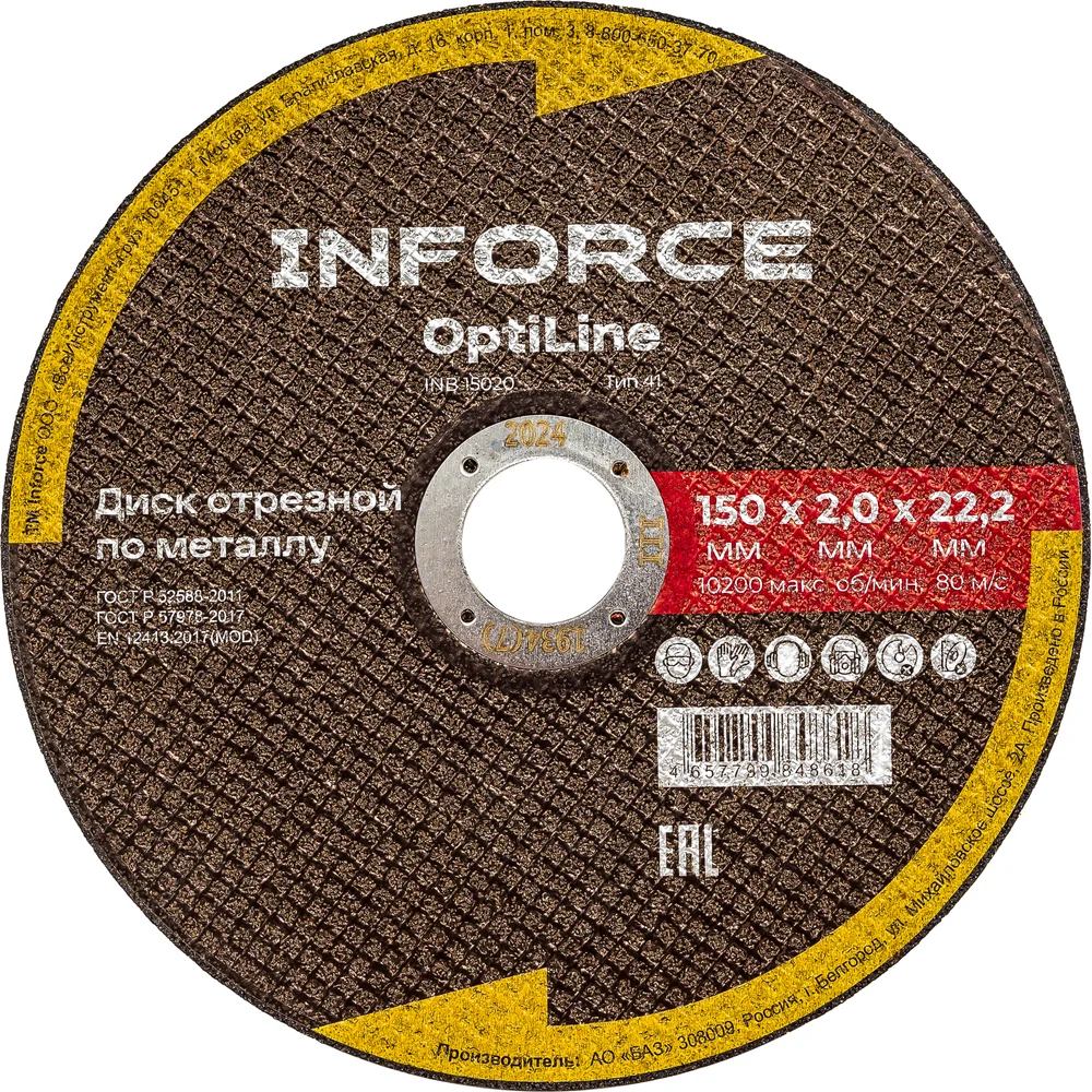 Диск отрезной по металлу OptiLine (150x2.0x22.2 мм) Inforce INB15020 является сменным элементом для угловых шлифовальных машин. Применяется для резки металлических изделий. Диск обладает высокой производительностью и большим ресурсом работы. Оснастка изготавливается на современном оборудовании под строгим контролем качества.