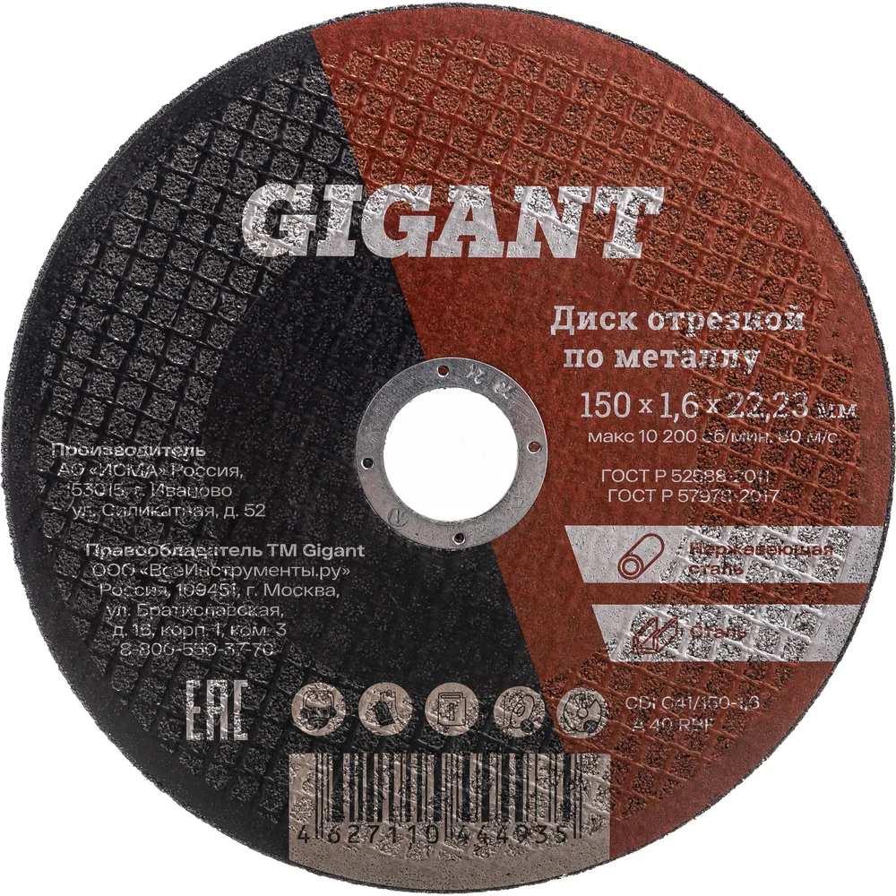 Диск отрезной Gigant СDI C41/150-1,6 является сменным элементом для угловых шлифовальных машин. Применяется для реза по металлу. Диск обладает высокой производительностью и большим ресурсом работы. Оснастка изготавливается на современном оборудовании под строгим контролем качества. Отличается твердостью и износостойкостью, что позволяет достаточно долго сохранять первоначальные режущие свойства. Gigant – собственная торговая марка компании ВсеИнструменты.ру, разработанная специально для требовательных мастеров. При изготовлении товаров Gigant используется современное оборудование и прочные материалы. Производство осуществляется на современных предприятиях России и Азии. Тестирование товаров осуществляется в два этапа, каждая партия инструментов проходит проверку на соответствие стандартам и заявленным техническим характеристикам. Это является залогом качества и надежности готового продукта. Продукция представлена широкой линейкой инструментов. У нас можно приобрести ручной инструмент, строительный, садовый, сантехнический, климатический, крепежный, автогаражный, а также станки, расходные материалы и многое другое.