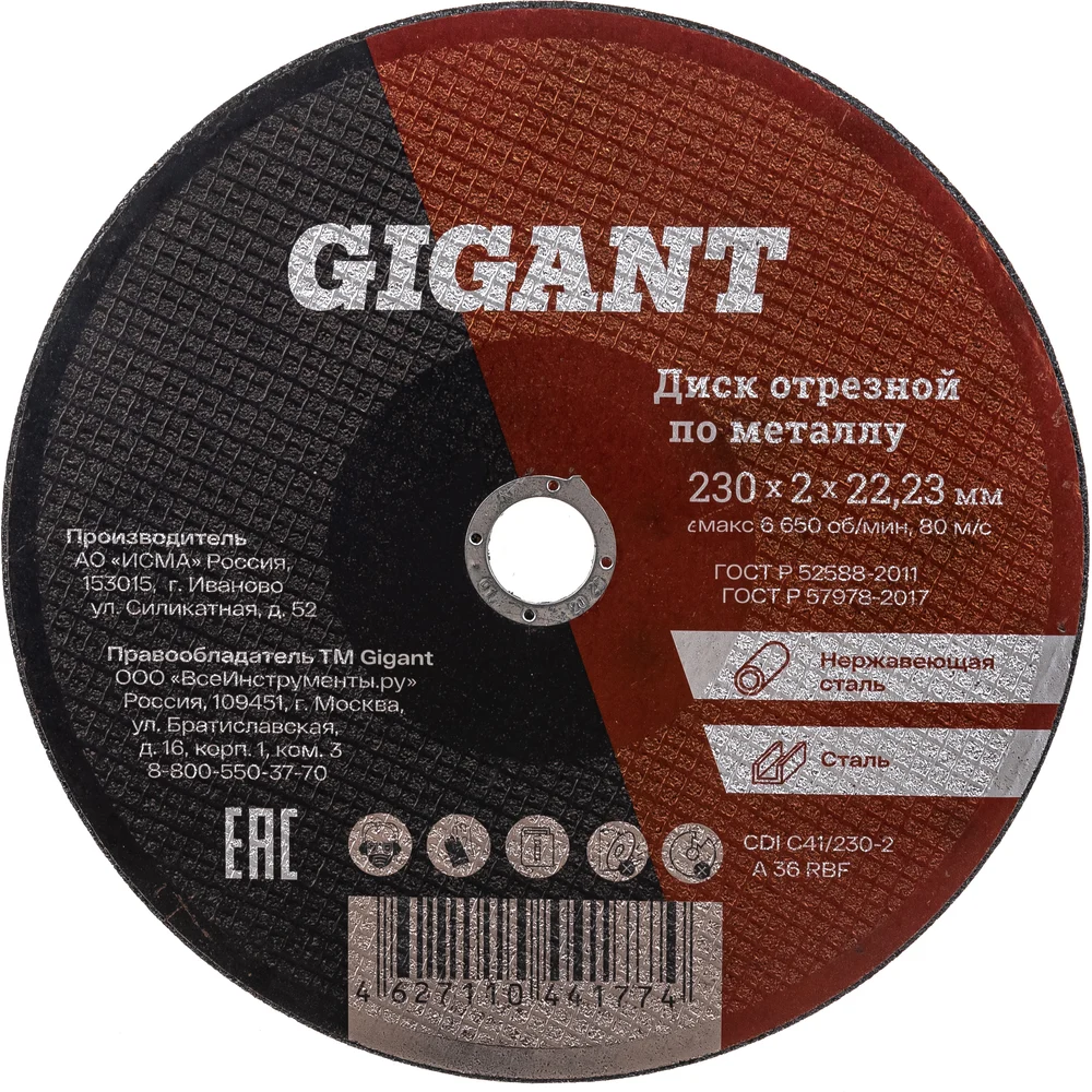 Диск Gigant CDI C41/230-2 является сменным элементом для угловых шлифовальных машин. Применяется для реза по металлу. Диск обладает высокой производительностью и большим ресурсом работы. Оснастка изготавливается на современном оборудовании под строгим контролем качества. Отличается твердостью и износостойкостью, что позволяет достаточно долго сохранять первоначальные режущие свойства. Посадочный диаметр — 22,2 мм позволяет использовать диск на большинстве современных шлифовальных машин. Gigant – собственная торговая марка компании ВсеИнструменты.ру, разработанная специально для требовательных мастеров. При изготовлении товаров Gigant используется современное оборудование и прочные материалы. Производство осуществляется на современных предприятиях России и Азии. Тестирование товаров осуществляется в два этапа, каждая партия инструментов проходит проверку на соответствие стандартам и заявленным техническим характеристикам. Это является залогом качества и надежности готового продукта. Продукция представлена широкой линейкой инструментов. У нас можно приобрести ручной инструмент, строительный, садовый, сантехнический, климатический, крепежный, автогаражный, а также станки, расходные материалы и многое другое.