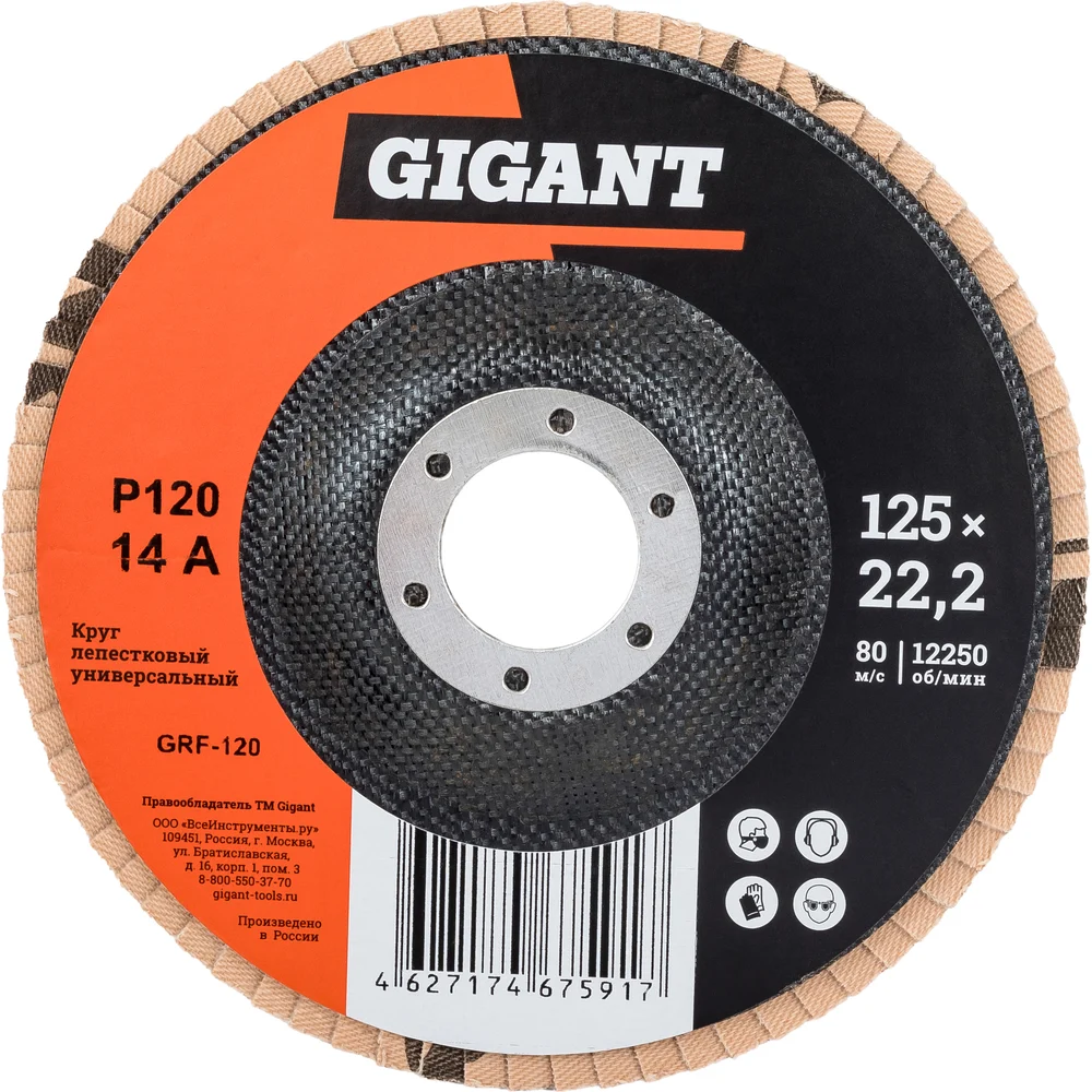 Круг лепестковый торцевой 125x22,2 10 шт Gigant GRF-120-10 предназначен для угловых шлифовальных машин. Применяется для обработки металла, древесины или пластика. Круг работает устойчиво, не оставляет прижогов. Обеспечивает равномерный и качественный процесс шлифовки материала, соответствующий выбранной зернистости круга. Тканевая основа лепестков равномерно изнашивается в процессе работы, открывая следующий слой абразива, позволяя полностью использовать ресурс круга.