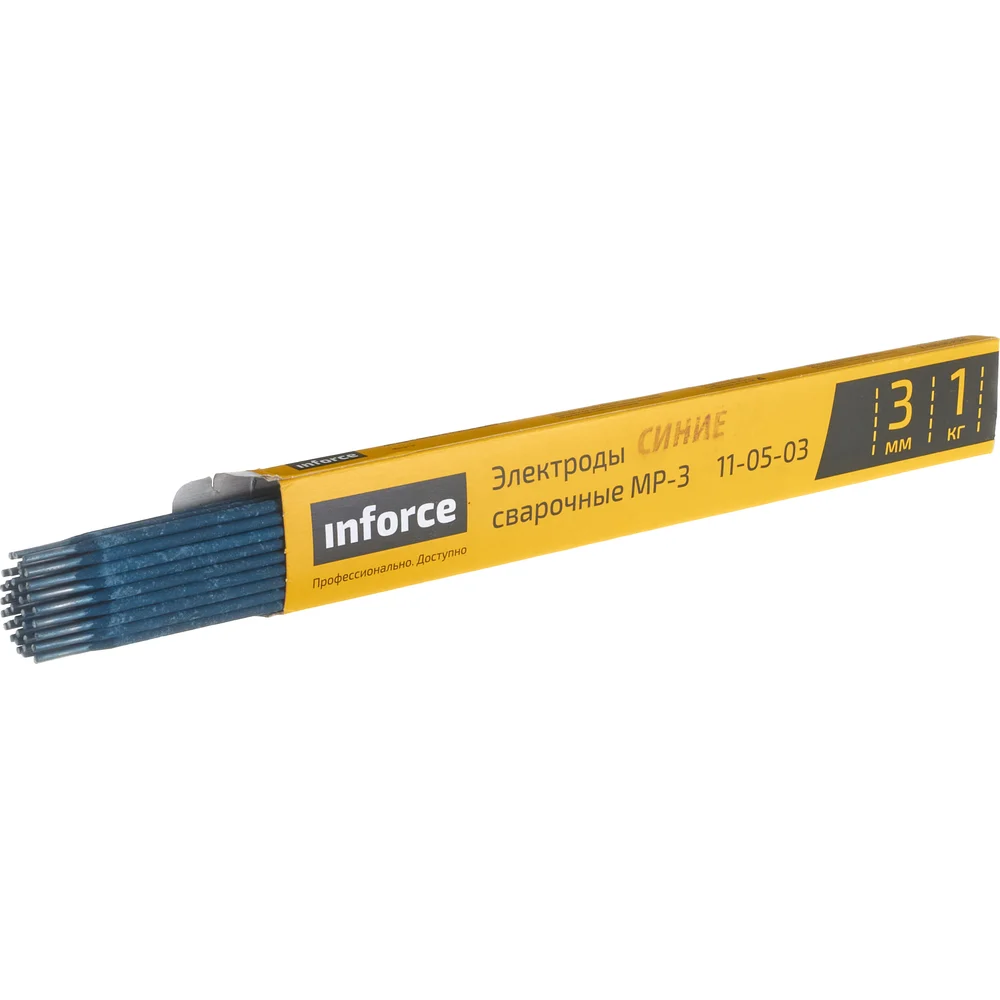 Электроды Inforce 11-05-03 предназначены для ручной дуговой сварки ответственных конструкций из углеродистых сталей с временным сопротивлением до 50 кгс/мм2. Сварка проводится во всех пространственных положениях, кроме вертикального вниз, постоянным током обратной полярности и переменным током от источников питания с напряжением холостого хода (50±5)В. Параметры: Расход электродов на 1 кг наплавленного металла — 1.7 кг; Временное сопротивление разрыву — 450 МПа; Относительное удлинение — 20%; Ударная вязкость — 80 Дж/см2; Коэффициент наплавки — 8.5 г/Ач. Химический состав наплавленного металла: C: <0.12%; Mn: 0.5-0.8%; Si: 0.07-0.2%; S: <0.04%; P: <0.045%.