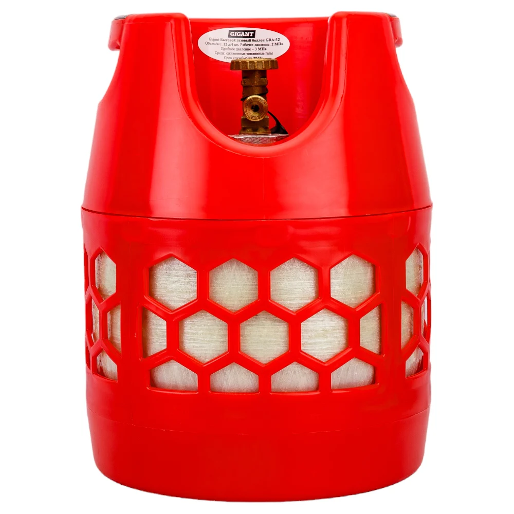Композитный баллон для сжиженных газов 12 л (LPG/СУГ) Gigant GRA-12 применяется для хранения и транспортировки сжиженных газов. Предохранительный клапан защищает от превышения критического давления. Баллон безопасен в эксплуатации, его можно использовать внутри помещений. Баллон применяется в газоснабжении, отоплении домов, в туризме и рыбалке для обогрева, освещения или приготовления пищи. А также в строительстве и промышленности.