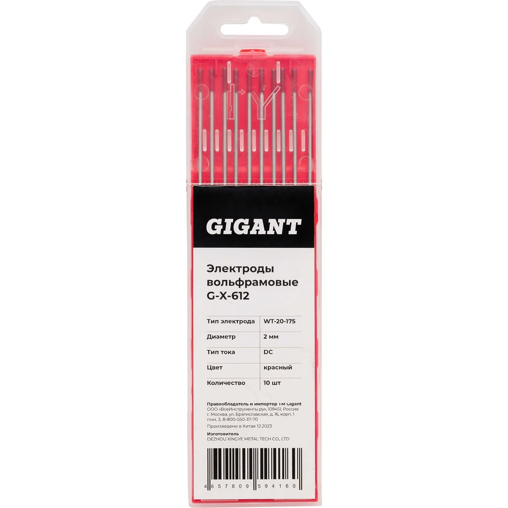 Электроды вольфрамовые WT-20-175 диам. 2,0 мм красный DC упаковка 10 шт Gigant G-X-612 служат для сварочных работ TIG сваркой в среде инертных газов. Подходят для сварки углеродистых, низколегированных и нержавеющих сталей, титана, меди и их сплавов на постоянном токе (DC). Содержит 2% оксида тория. Торий является радиоактивным материалом низкого уровня. Поэтому при регулярной сварке в закрытых помещениях и заточке следует строго соблюдать необходимые меры безопасности. Электрод характеризуется устойчивой дугой. Рабочий конец вольфрамового электрода должен быть чистым, иначе понижается надежность сварного шва, ухудшается его качество. Количество в упаковке — 10 шт.