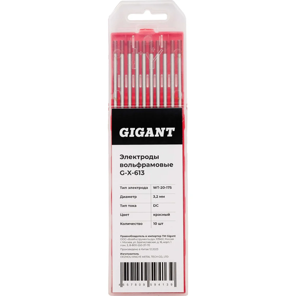 Электроды вольфрамовые WT-20-175 диам. 3,2 мм красный DC упаковка 10 шт Gigant G-X-613 служат для сварочных работ TIG сваркой в среде инертных газов. Подходят для сварки углеродистых, низколегированных и нержавеющих сталей, титана, меди и их сплавов на постоянном токе (DC). В состав входит 2% оксида тория.Торий является радиоактивным материалом низкого уровня. Поэтому при регулярной сварке в закрытых помещениях и заточке следует строго соблюдать необходимые меры безопасности. Электрод отличается устойчивой дугой. Рабочий конец электрода должен быть чистым, чтобы исключить некачественный шов.