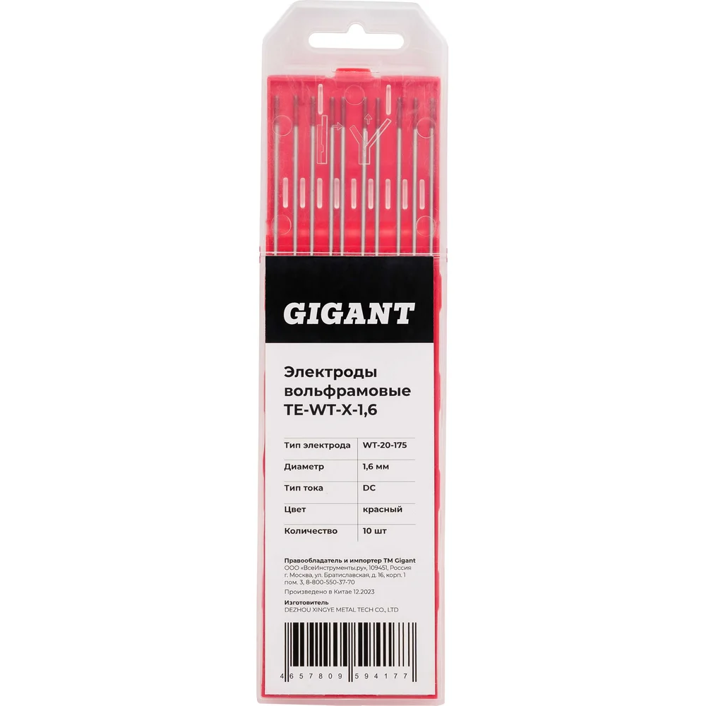 Электроды вольфрамовые WT-20-175 диам. 1,6 мм красный DC упаковка 10 шт Gigant TE-WT-X-1,6 предназначен для сварки методом TIG в среде инертных газов. Применяется при сварке углеродистых, низколегированных и нержавеющих сталей, титана, меди и их сплавов на постоянном токе (DC). Электроды состоят на 99.5% из вольфрама, поэтому имеют длительный срок службы. Отличаются устойчивой дугой даже при небольшом значении тока. Содержат 2% оксида тория. Торий является радиоактивным материалом низкого уровня. Поэтому при регулярной сварке в закрытых помещениях и заточке следует строго соблюдать необходимые меры безопасности. Рабочий конец вольфрамового электрода должен быть чистым, иначе понижается надежность сварного шва, ухудшается его качество. Количество в упаковке — 10 шт.