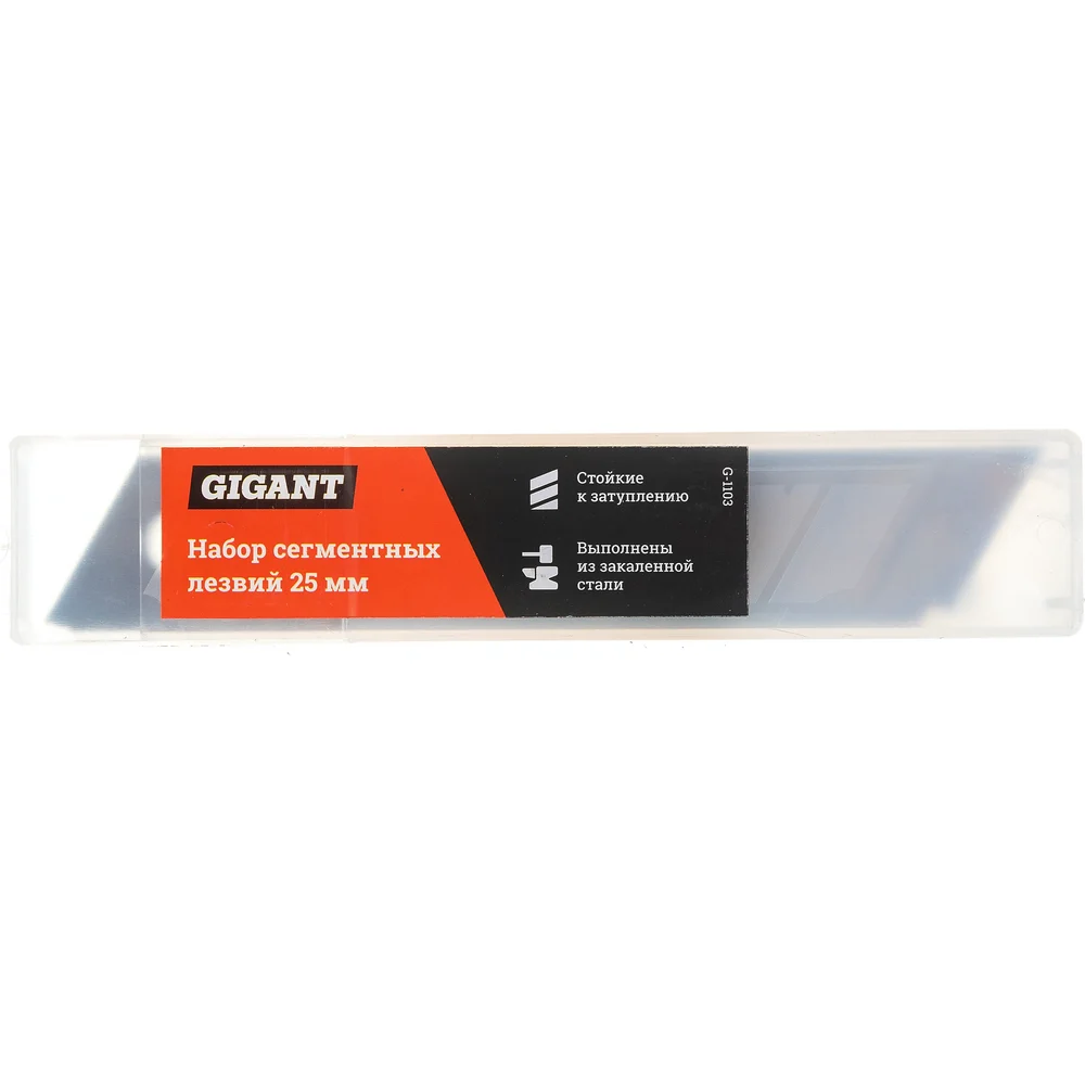 Набор сегментных лезвий Gigant G-1103 предназначен для эксплуатации совместно с ножами с целью резки картона, бумаги, обоев, линолеума и т.п. Лезвия выполнены из закаленной стали твердостью 65 HRc и имеют сегментированную структуру, что позволяет отламывать затупившийся сегмент и продолжать работу. Двойная заточка обеспечивает длительность службы. Каждое лезвие имеет 6 сегментов. В комплекте поставляется 10 лезвий. Данный товар поставляется взамен Набор сегментных лезвий 25мм Inforce GW 11-03-03. Gigant – собственная торговая марка компании ВсеИнструменты.ру, разработанная специально для требовательных мастеров. Продукция представлена профессиональными и бытовыми инструментами, имеет доступную цену и высокое качество. При изготовлении товаров Gigant используется современное оборудование и прочные материалы. Производство осуществляется на современных предприятиях России и Азии. Тестирование товаров осуществляется в два этапа, каждая партия инструментов проходит проверку на соответствие стандартам и заявленным техническим характеристикам. Это является залогом качества и надежности готового продукта. Продукция представлена широкой линейкой инструментов. У нас можно приобрести ручной инструмент, строительный, садовый, сантехнический, климатический, крепежный, автогаражный, а также станки, расходные материалы и многое другое.