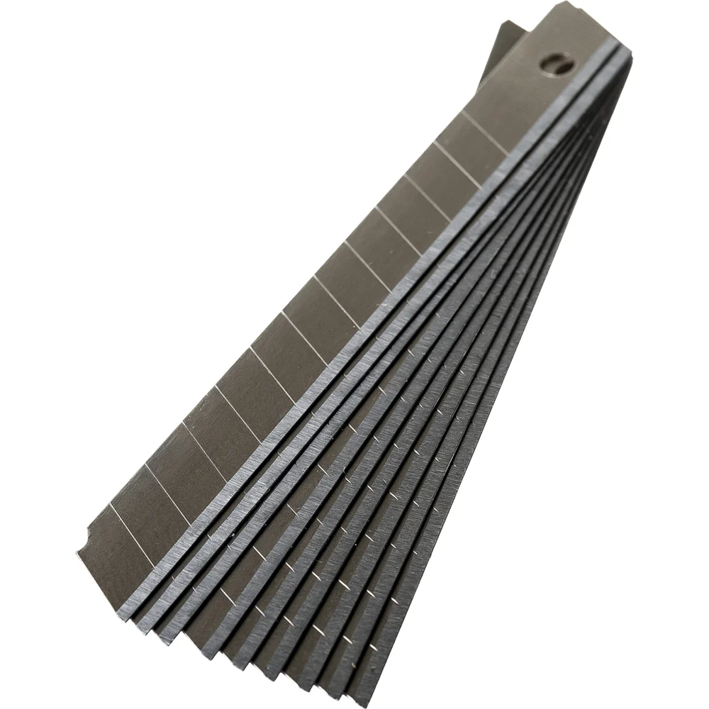 Набор сегментных лезвий 10 шт, 9 мм Gigant G-1105 предназначен для эксплуатации совместно с ножами с целью резки картона, бумаги, обоев, линолеума и т.п. Лезвия выполнены из закаленной стали твердостью 65 HRc и имеют сегментированную структуру, что позволяет отламывать затупившийся сегмент и продолжать работу. Двойная заточка увеличивает срок службы лезвий.